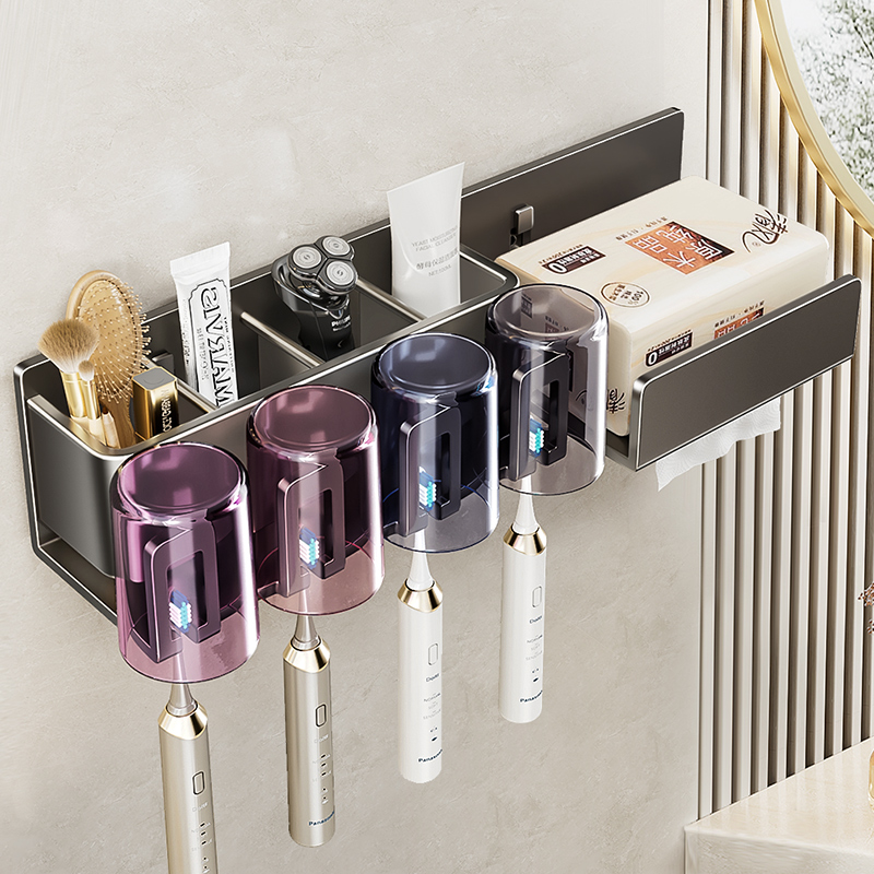 歯ブラシマウスウォッシュカップ収納ラックパンチフリー壁掛けバスルームティッシュボックス多機能オールインワン収納ラック