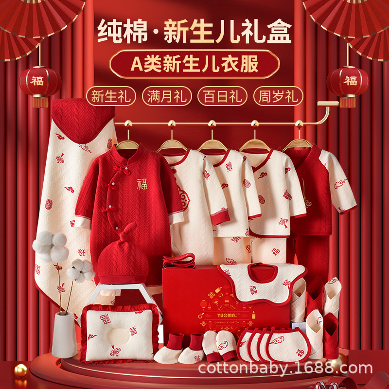 新生児ギフトボックス赤ちゃん服純綿セット生まれたばかりの男女赤ちゃん満月プレゼント用品大全