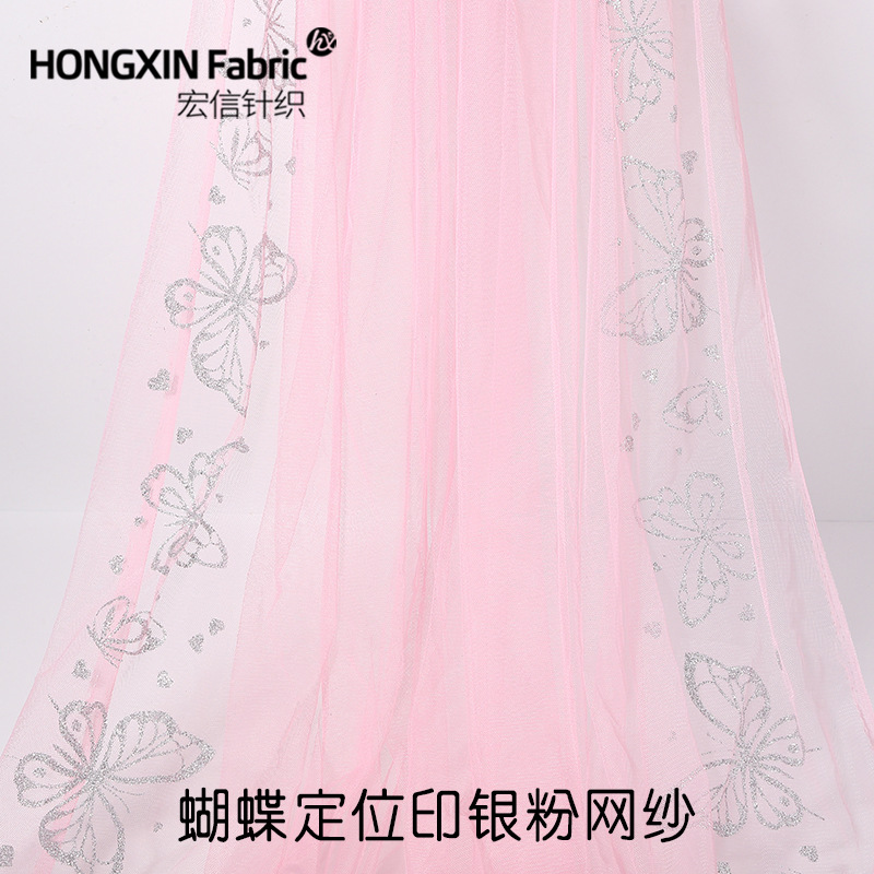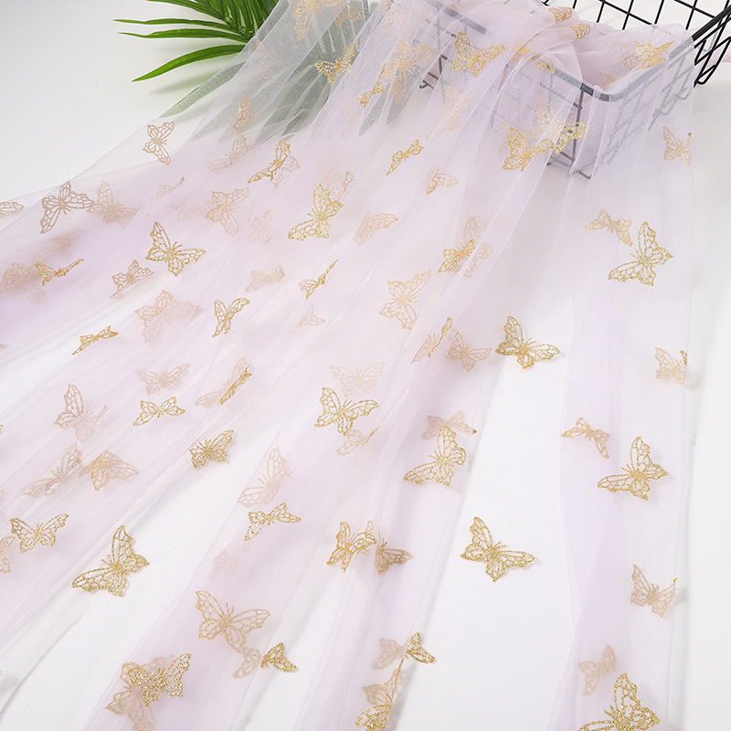 カスタマイズされた金粉蝶ネット布生地子供服ワンピース服装シャツ下着印刷金色蝶ネット糸柔らかい