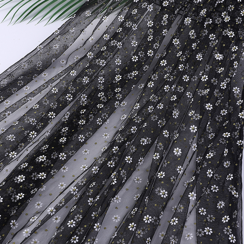 現物の小さい花のプリントのネットの布の小さい菊の金粉の網の糸のショーの服の子供服のおもちゃの網の糸の生地の金粉
