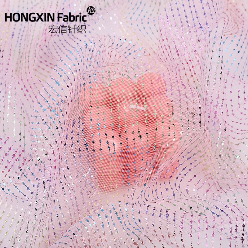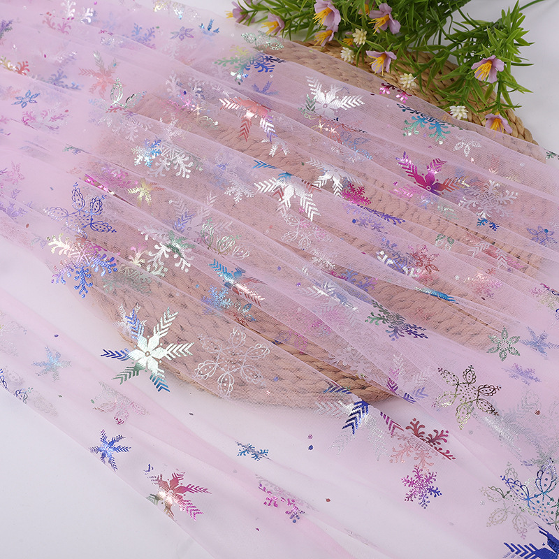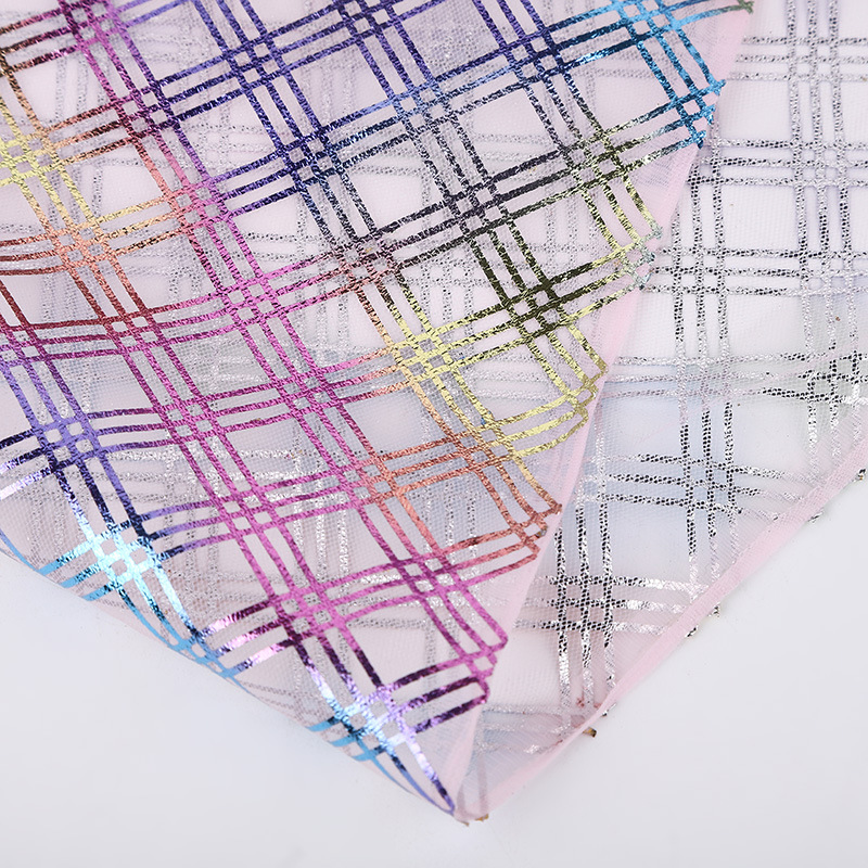 暗号化ナイロン七彩箔押しメッシュ生地幻彩メッシュレーザー箔押しメッシュ子供服生地新製品