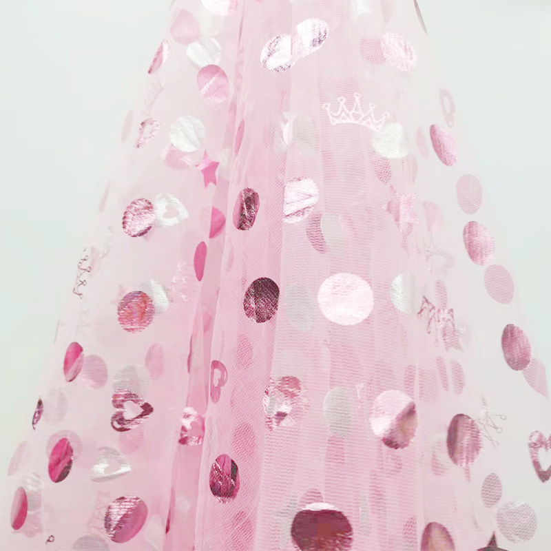 ナイロンスイスネット後加工箔押し小清新模様幻彩ネット生地ガーゼ童装tuuスカート生地