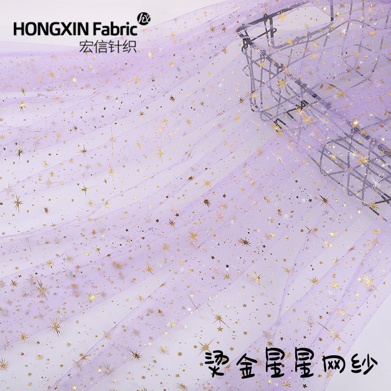 オーダーメードの夢幻の箔押しの星の紗のダイヤモンドのメッシュの布のおもちゃの頭の飾りの子供のワンピースの満天の星の箔押しのネットの布