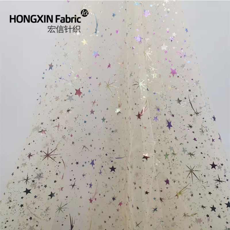 幻彩星網糸生地ナイロンスイス網箔押し七彩満天星網糸蓬蓬スカート生地