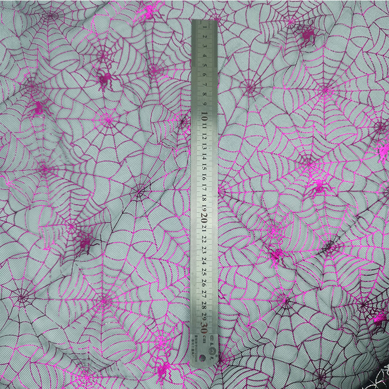 人気ポリエステル平布箔押し蜘蛛網糸生地薔薇赤色箔押し蜘蛛網布ハロウィーン装飾網布
