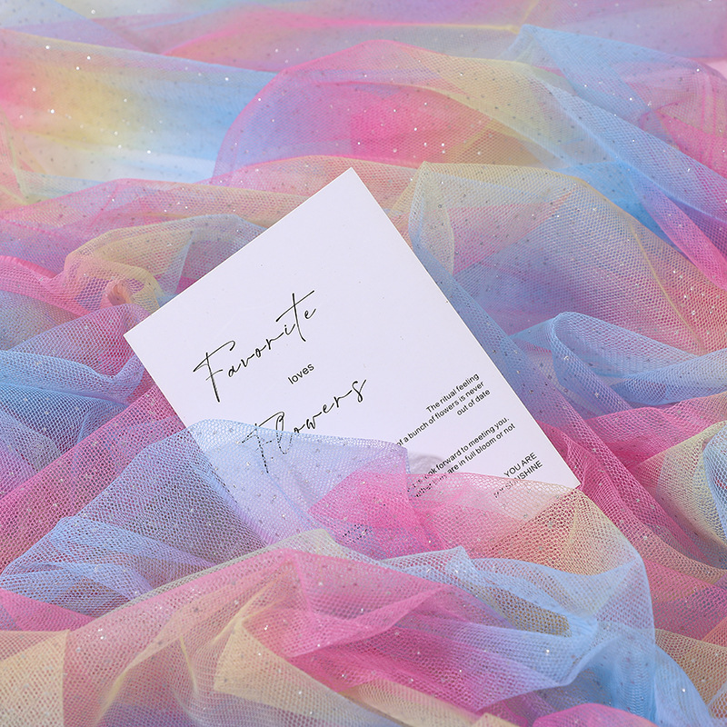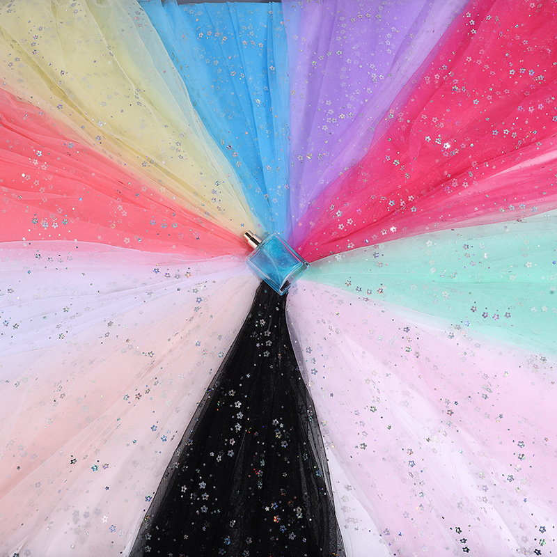 現物の銀粉の虹のグラデーションの網の紗の子供服のおもちゃの演出服の手作りのDIYは銀の金粉を印刷して六角ネットを注文します。