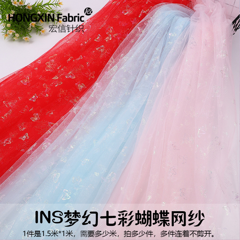 新しい夢の色の蝶の網の糸の生地は背景の布の婦人服の子供服の髪飾りの首紐の幻の色の蝶の網の糸を飾ります。