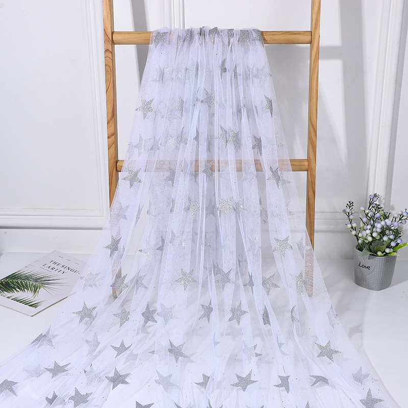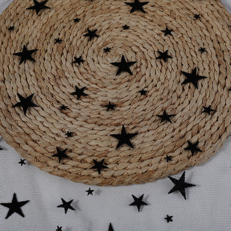 現物黒色植毛五角星網糸生地童装ワンピース頭飾り玩具サイズ星植毛網布