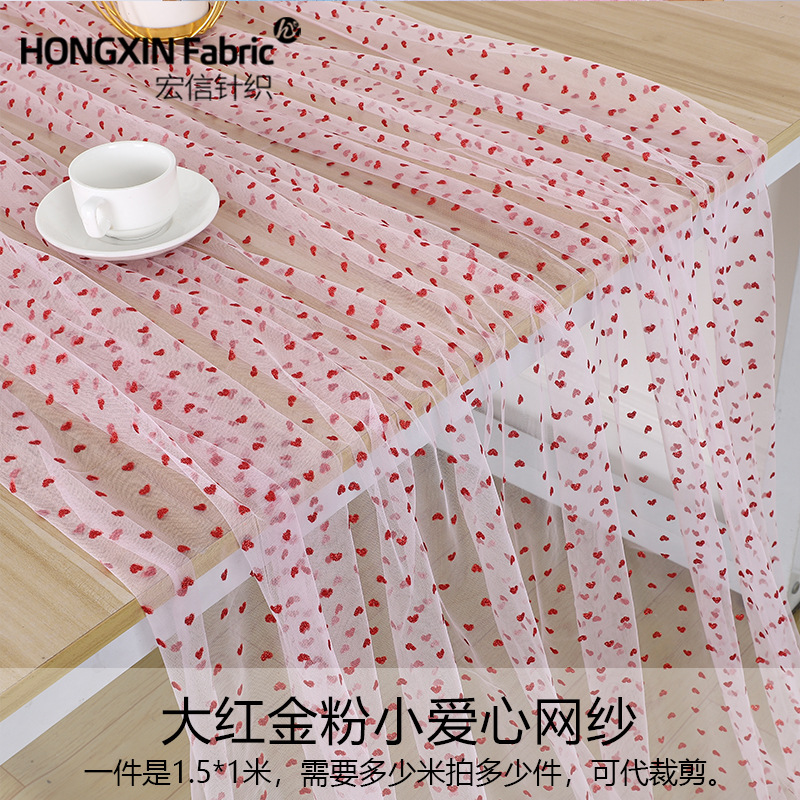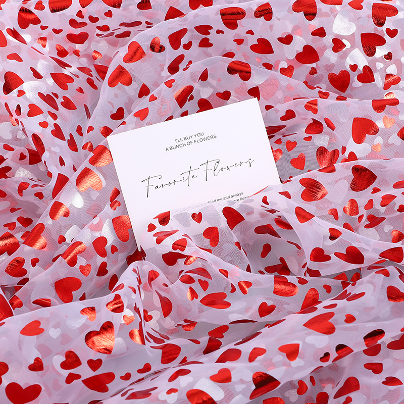 赤い愛の箔押し網糸生地かわいい桃心網布喜糖袋頭飾り髪輪バレンタインデー装飾布