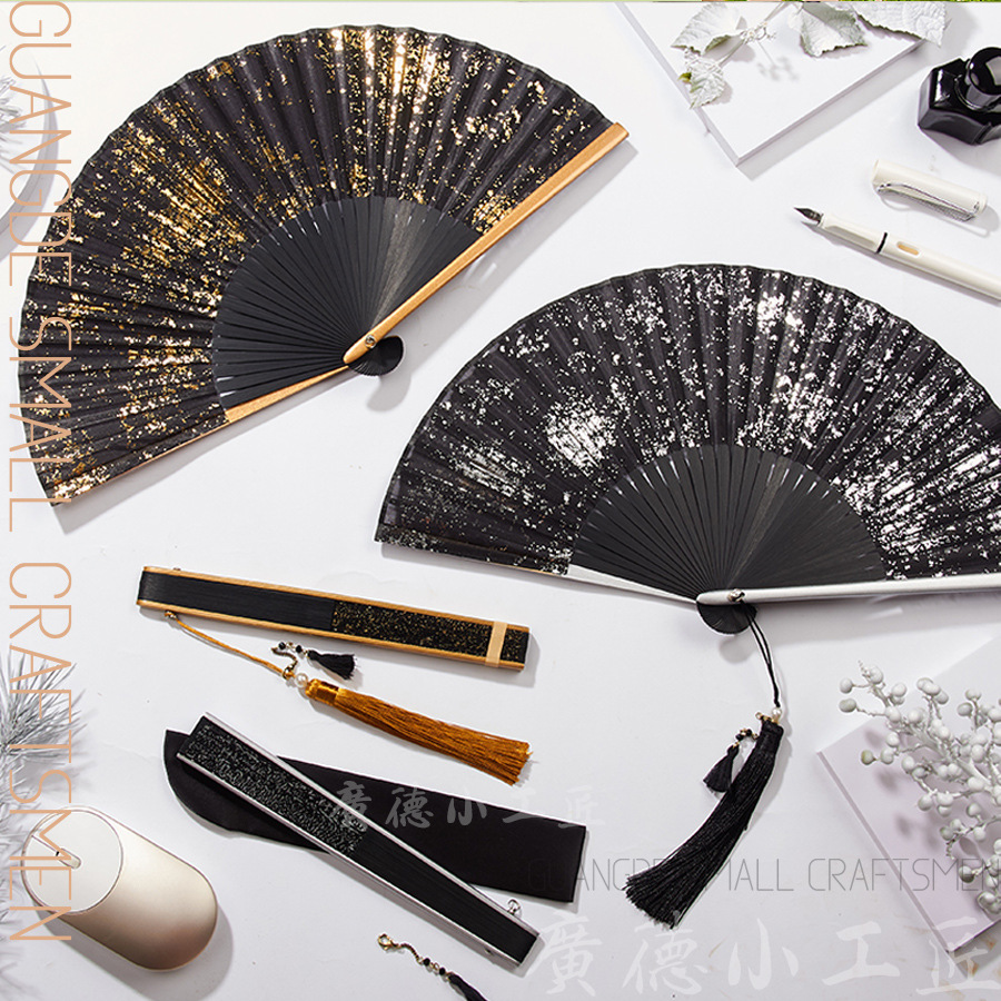 中国風折りたたみ小型扇子古代スタイル漢服ダンス水墨画シルク布新中国風ガールフレンドスタイル黒竹扇子女性用