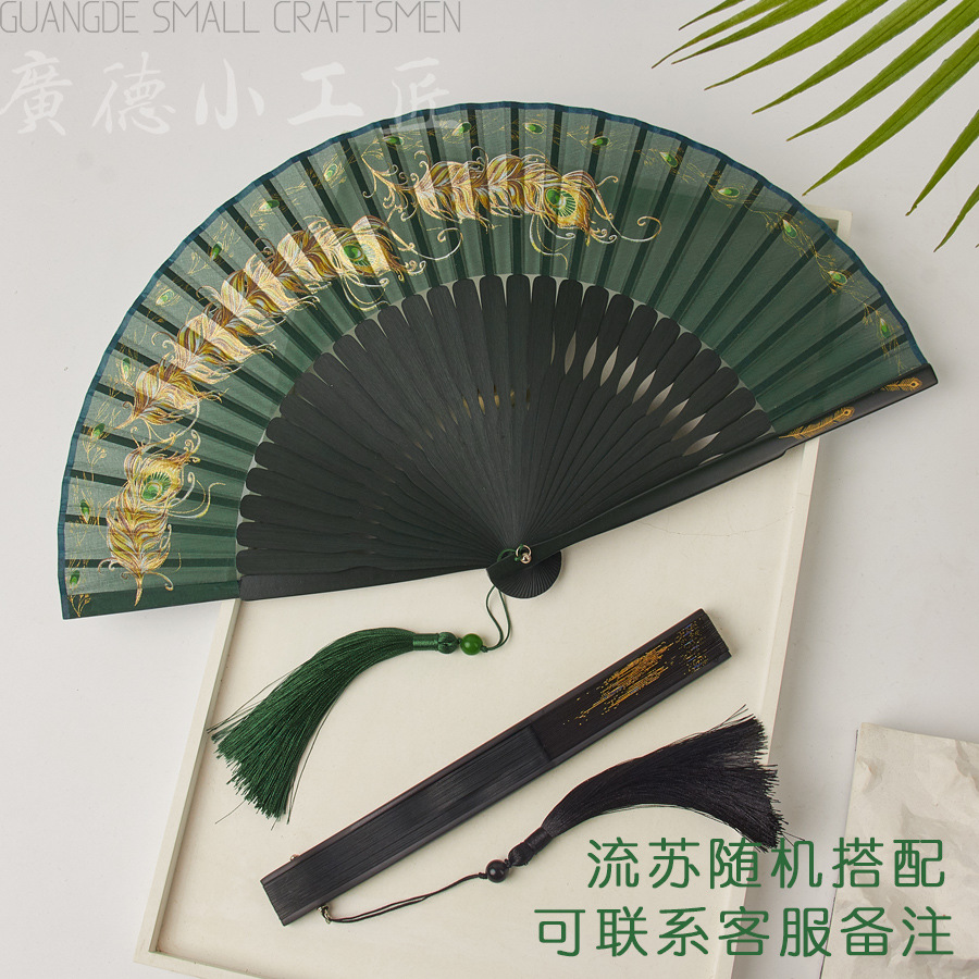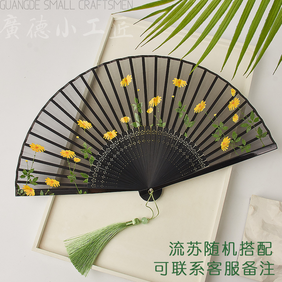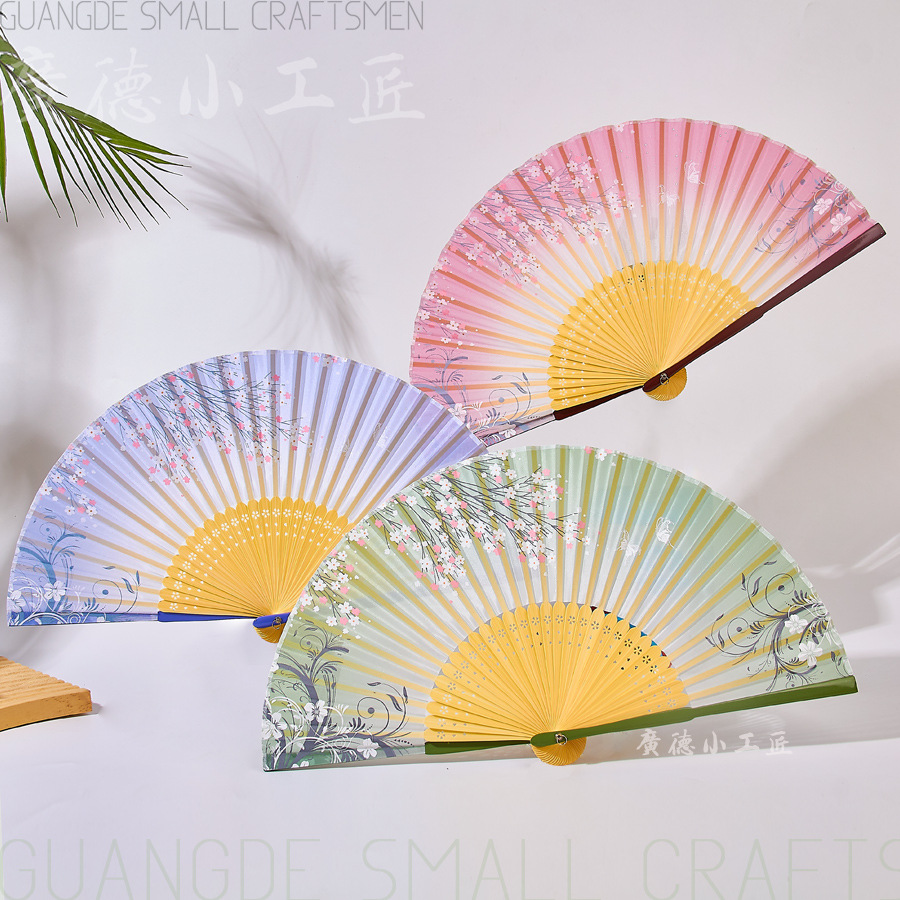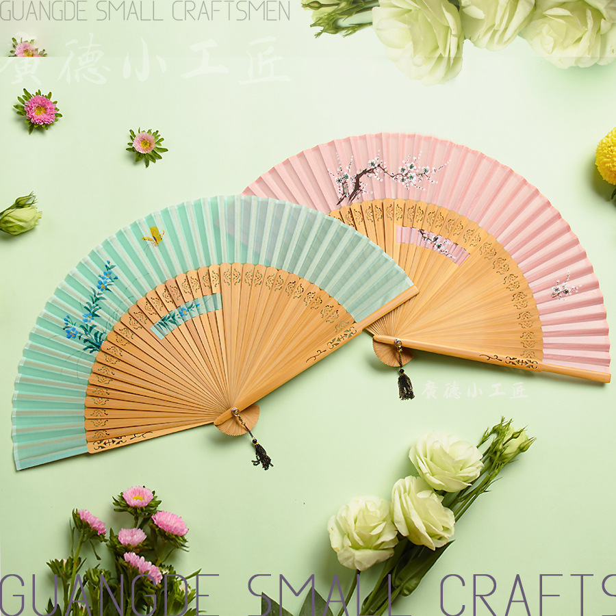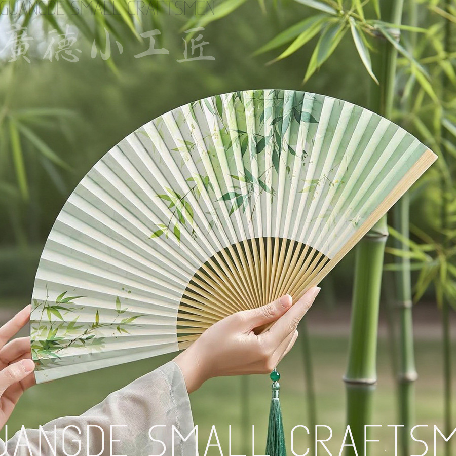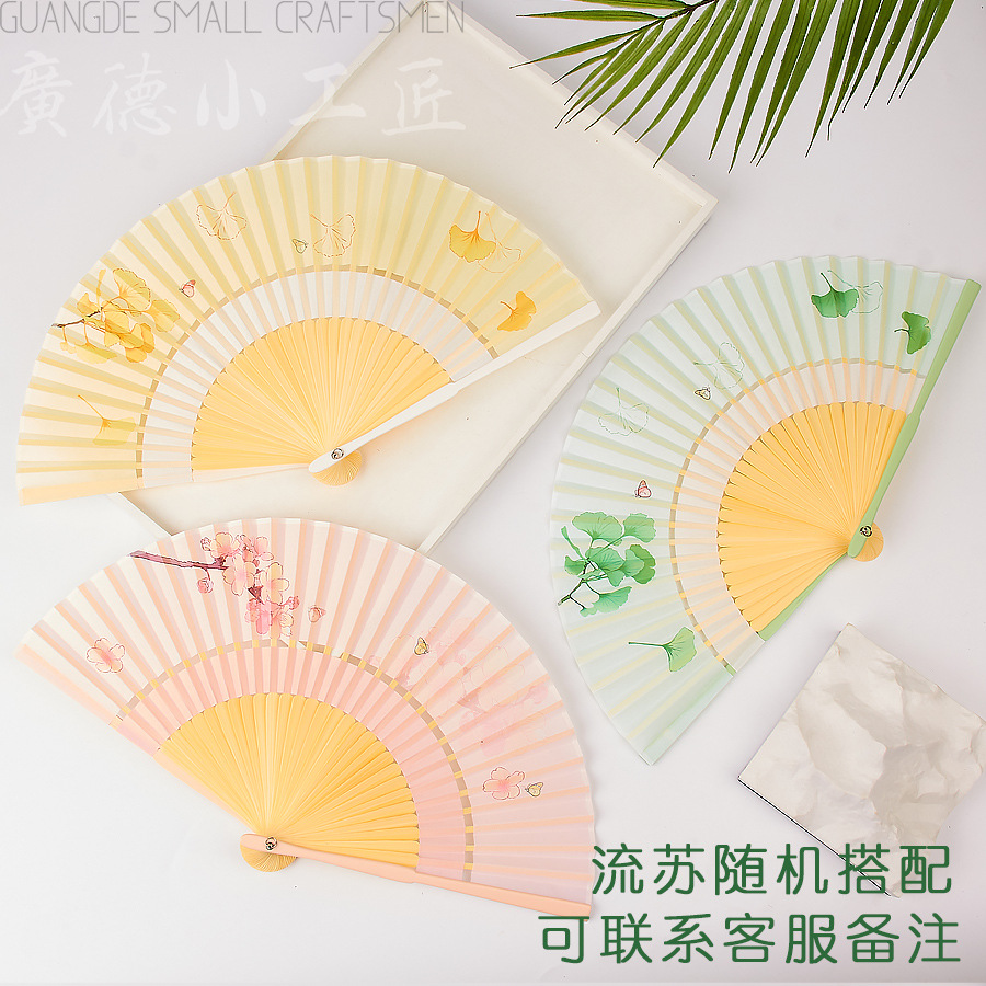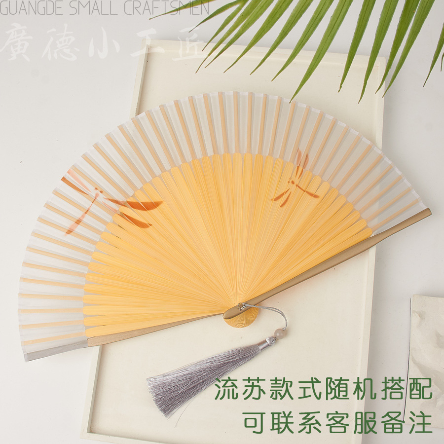 扇子折扇女子学生夏携帯折り畳み扇古風新中国式漢服舞踏扇耐久性扇骨全竹扇