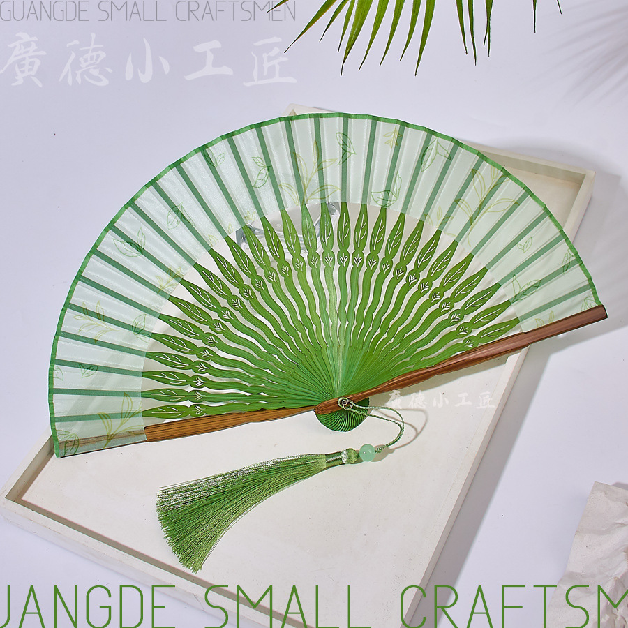 緑の扇子茶葉ライトグリーン新しい扇子古代スタイルの女性の扇子新しい中国風の漢服チャイナドレス扇子ダンス扇子