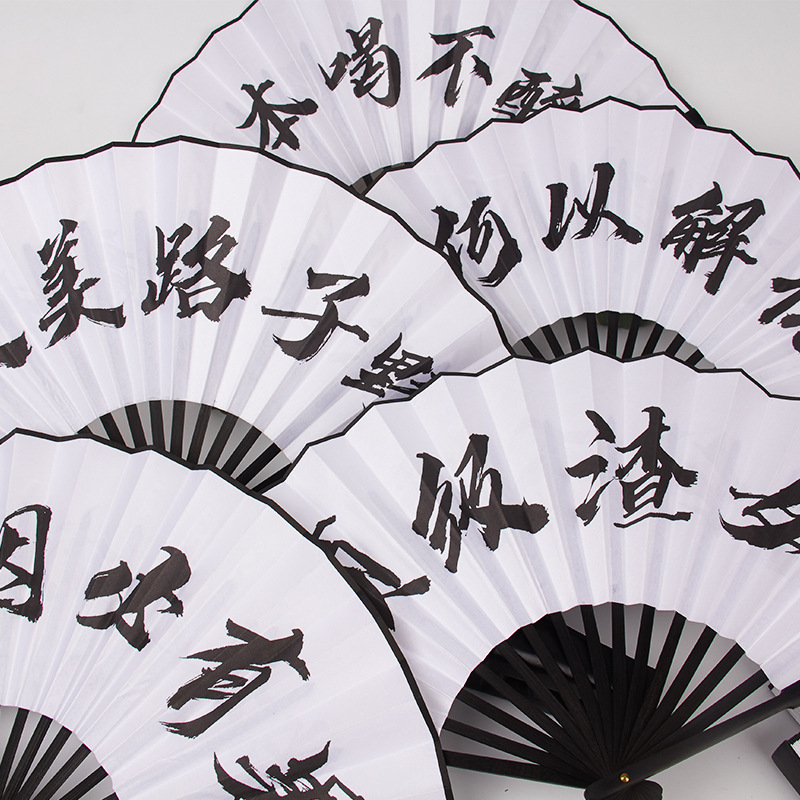 中国風30方8inch毛全本無地白紙扇子、両面装飾可能、男性用折りたたみ扇子、竹製