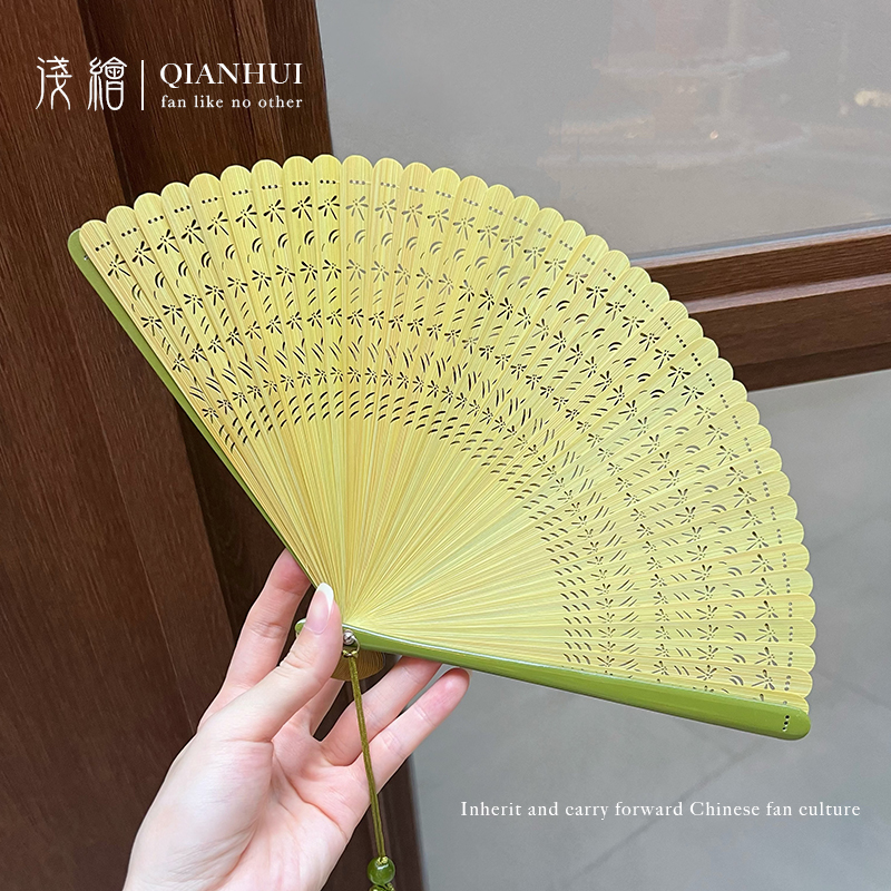 浅絵全竹扇子中空トンボ扇子 6inch ポータブルオリジナル竹緑中国風古代風古典舞踊扇子