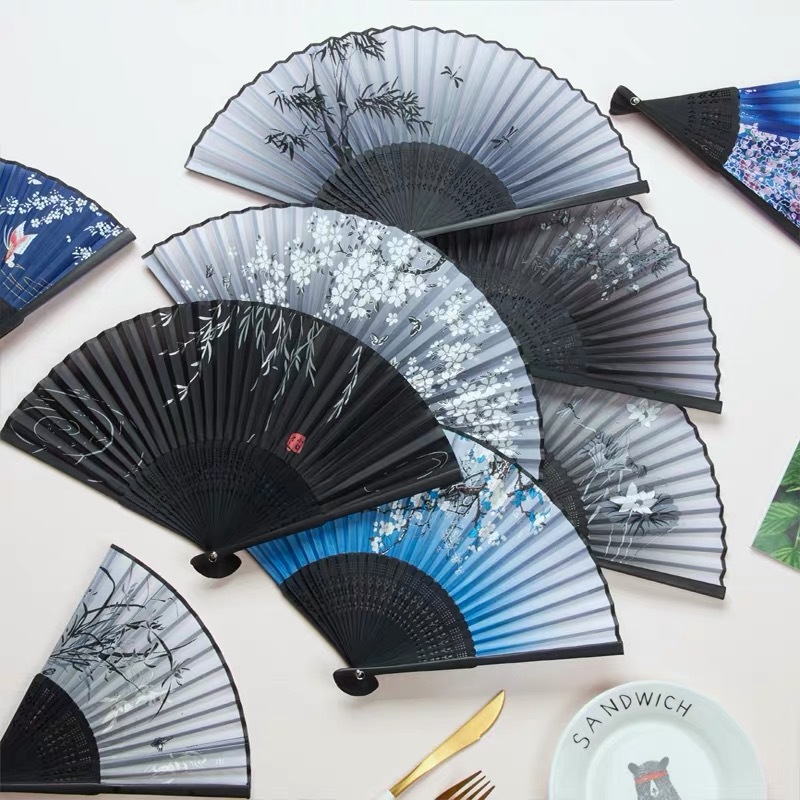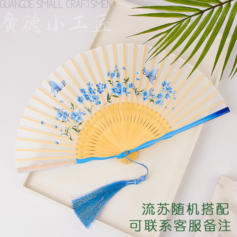 扇子中国風子供用折りたたみ竹扇子絹扇子古代風漢服広告扇子紙扇子空白扇子竹編み