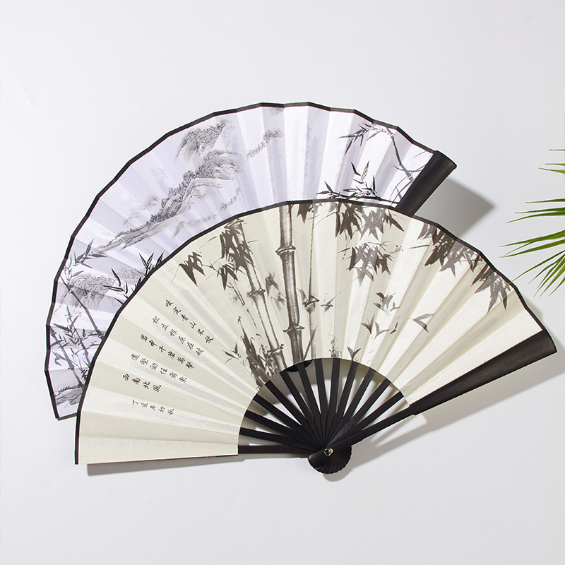 8寸の扇子の扇風機の中国風の山水画の水墨の風の男女の日常用の扇風機の頭の青竹の絹織物のトランポリンの扇風機