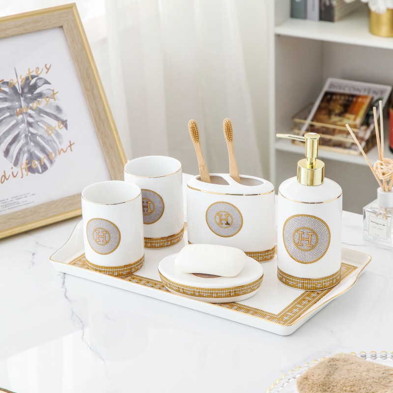 クロスボーダーヨーロッパスタイルのバスルームの洗面用品セット陶磁器六点セット