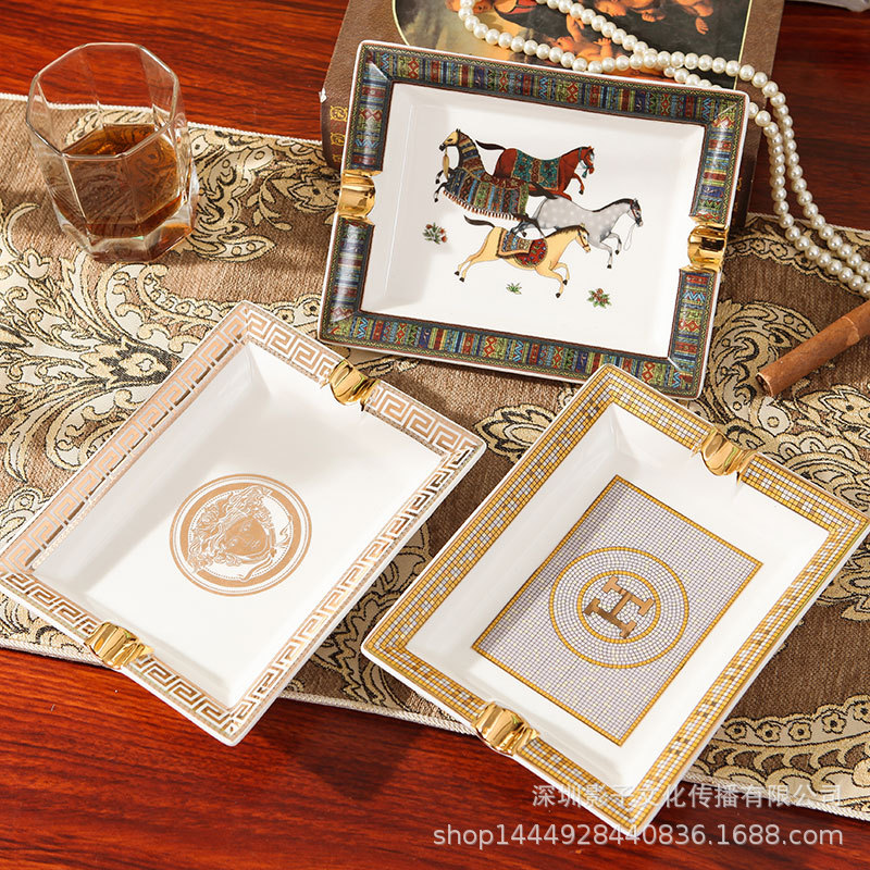 国境を越えた新商品のシガーの象牙の陶磁器の灰皿のヨーロッパ式の贈り物のファッション的な家の装飾の客間の用品のアイデアは並べます。