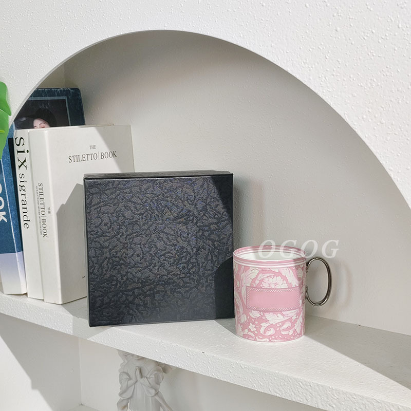 Fanjia バロックシリーズ ピンク マグカップ オフィス ホーム ボーンチャイナ マグカップ ウォーターカップ 高価値 軽い 高級感