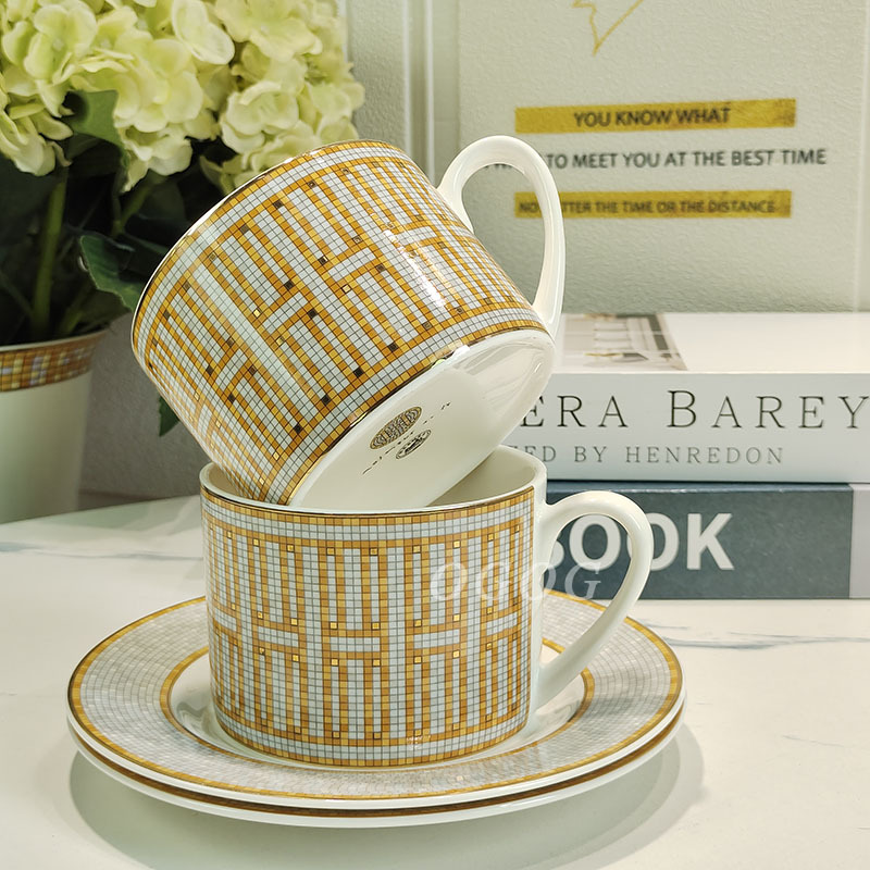 クロスボーダーゴールデン馬車ストライプコーヒーカップとソーサーセットボーンチャイナ大容量コーヒーカップレストランホームライト高級スタイル