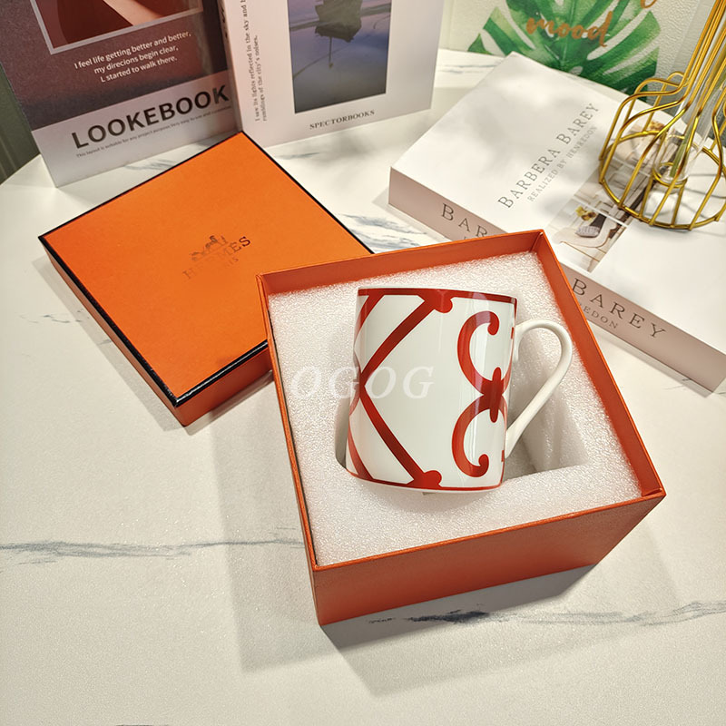跨境爱家经典款中国红马克杯家用办公室骨瓷马克杯早餐杯礼盒装