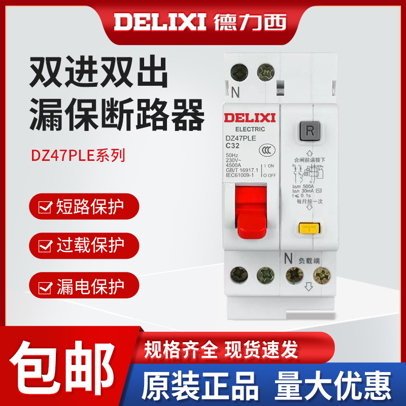 Delixi 1P+N 漏電保護装置 DZ47PLE サーキットブレーカー漏電保護付きダブルインとダブルアウト 20A25A32A