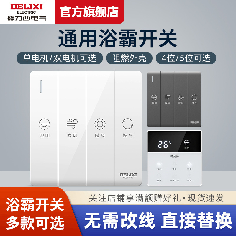 Delixi 防水風加熱バスヒータースイッチ 5 オープンフリップカバーユニバーサルバスルーム 5 インワンバスルーム 5 コントロールスイッチパネル