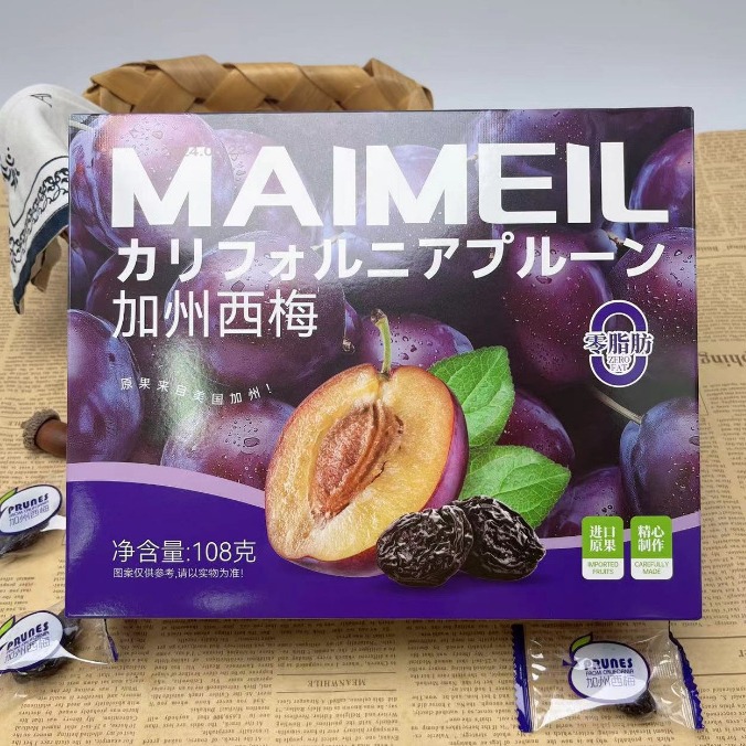 MAIMEILカリフォルニア西梅108g紙箱カジュアルフルーツ砂糖漬け梅類間食甘酸っぱいオフィス茶セット