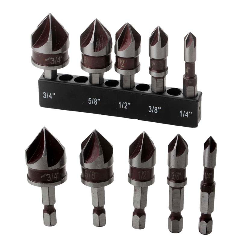 クロスボーダー工場5点セット赤色82 ° 六角柄五刃面取り器面取り刃ドリル