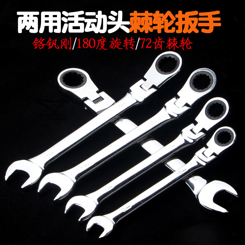 可动両用ラチェットレンチ首振りギア180 ° 梅花オープンダブル用crv72歯クイック