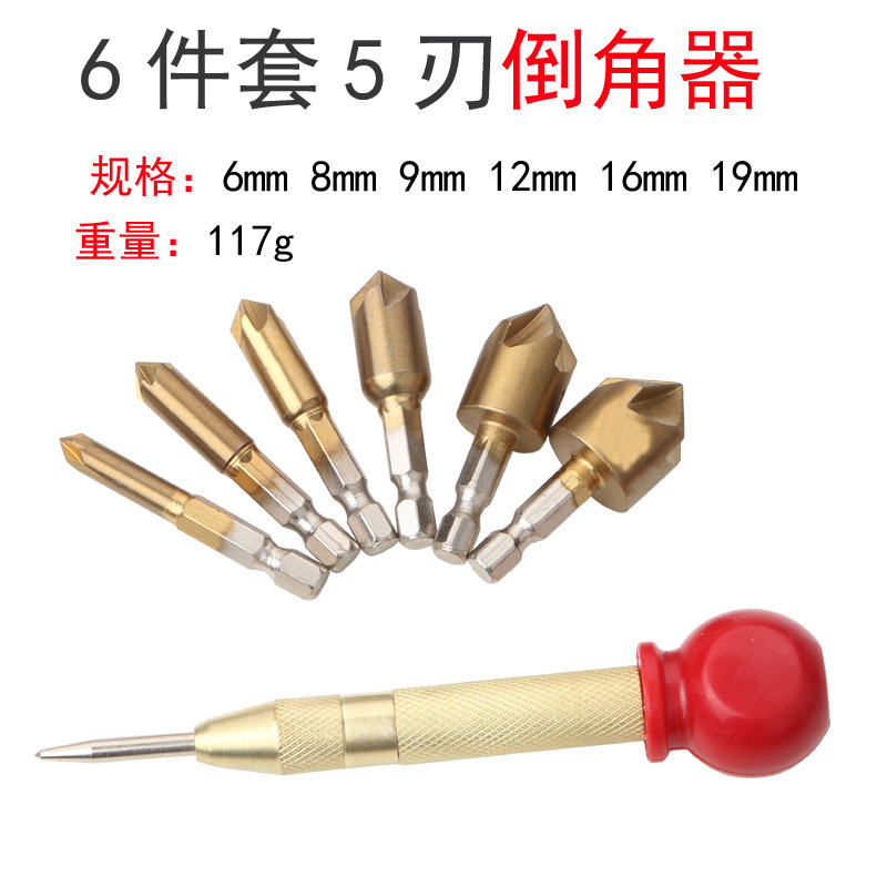 90度六角柄五刃面取り器六点セット6mm-19mm面取り刀大工穴あけ器