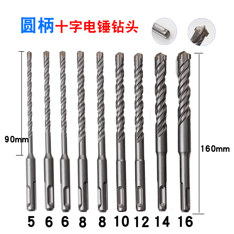 ハンマードリル9点セット丸柄2穴2溝コンクリート壁合金衝撃ドリルsds plus
