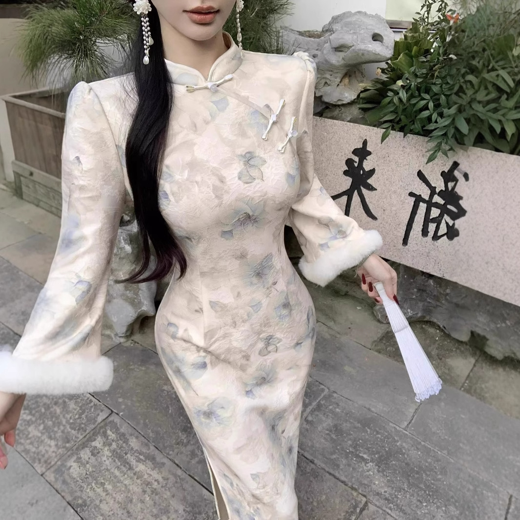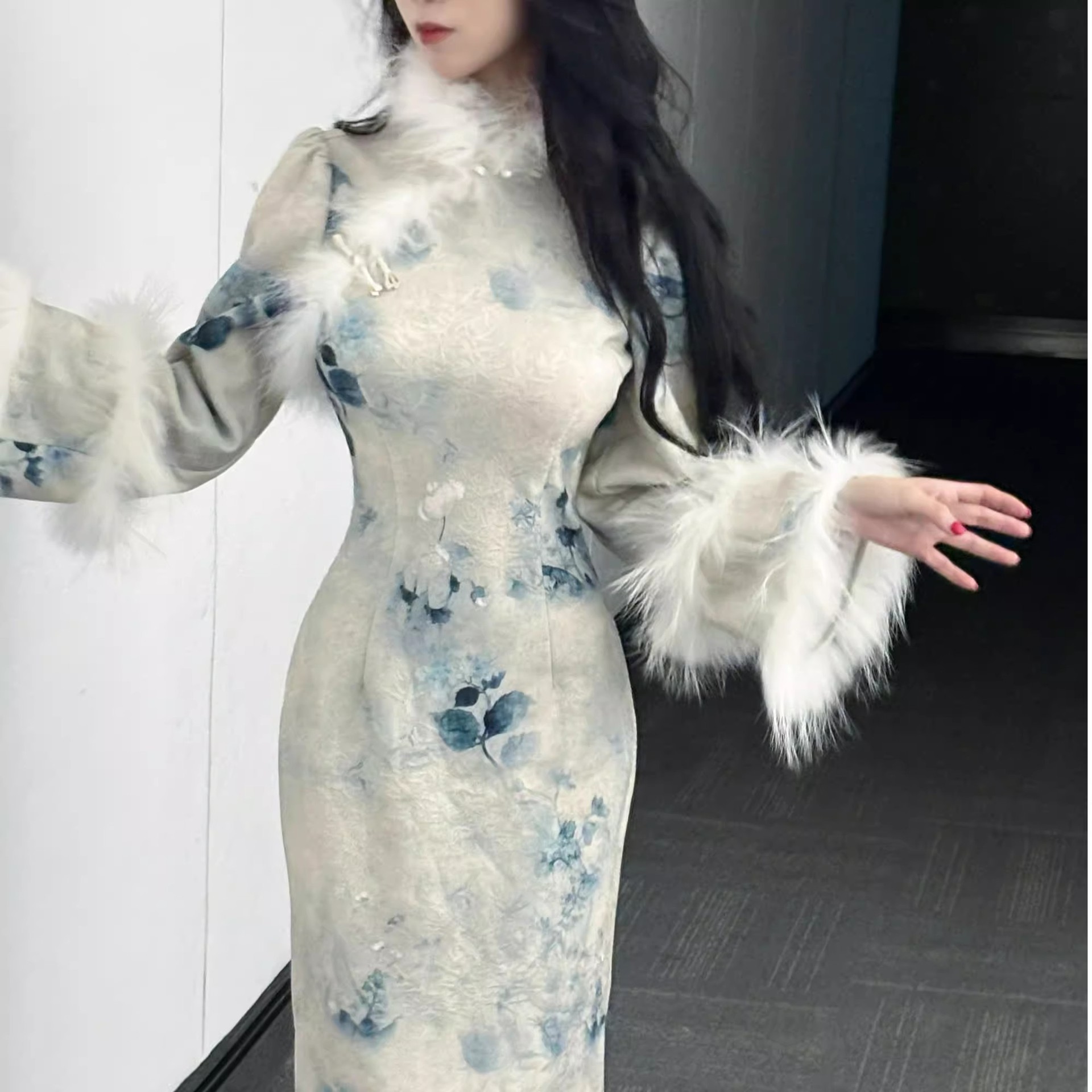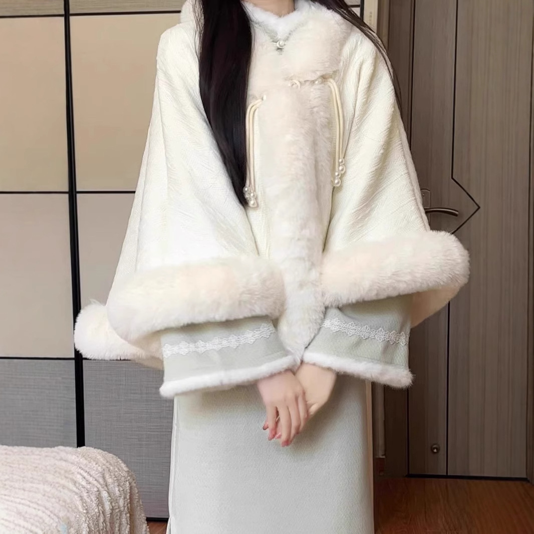 新中国式チャイナドレスの毛羽マントは日常的にマントを合わせて秋冬の民国風の保温とマントを厚くする
