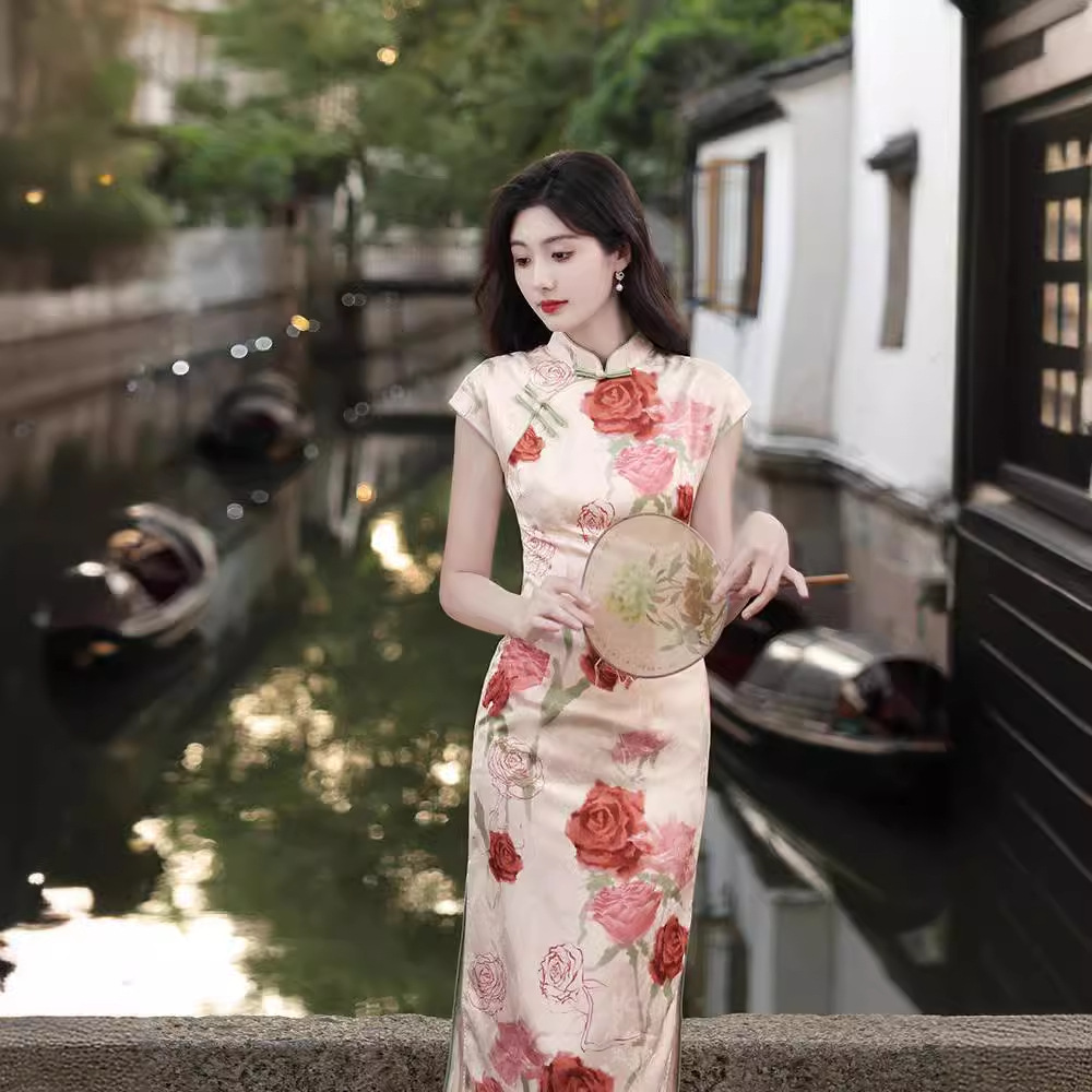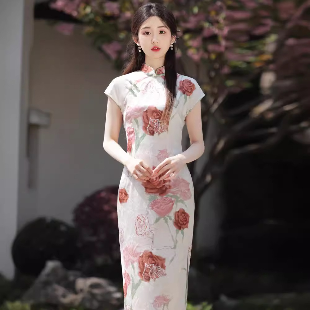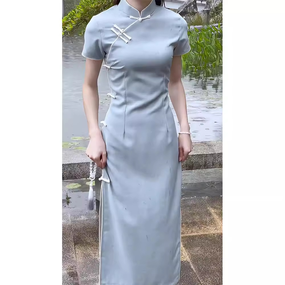 新中国式の美しいチャイナドレスの夏の新型2024は日常の少女の改良版の復古のワンピースの若いタイプを改良します。