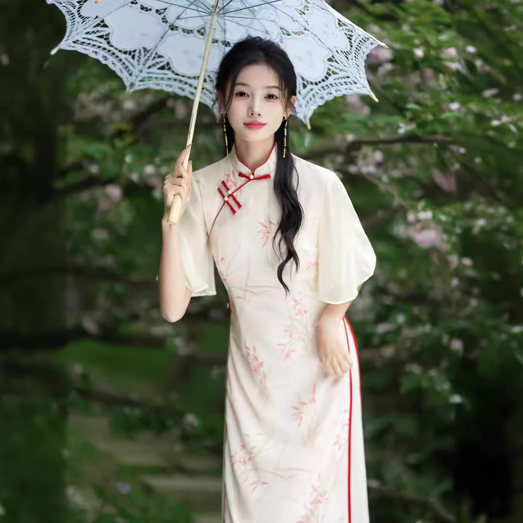 Aodai チャイナドレス 2025 新しいハイエンドの妖精のようなエレガントな改良された若い女の子の新しい中国風の日常着夏