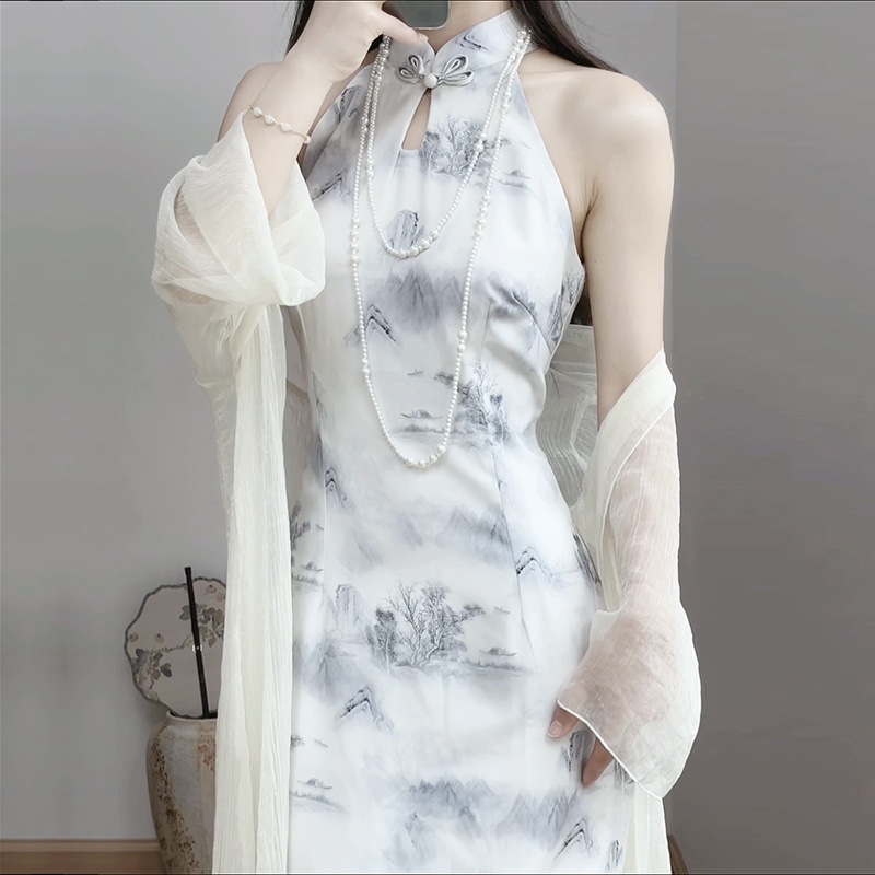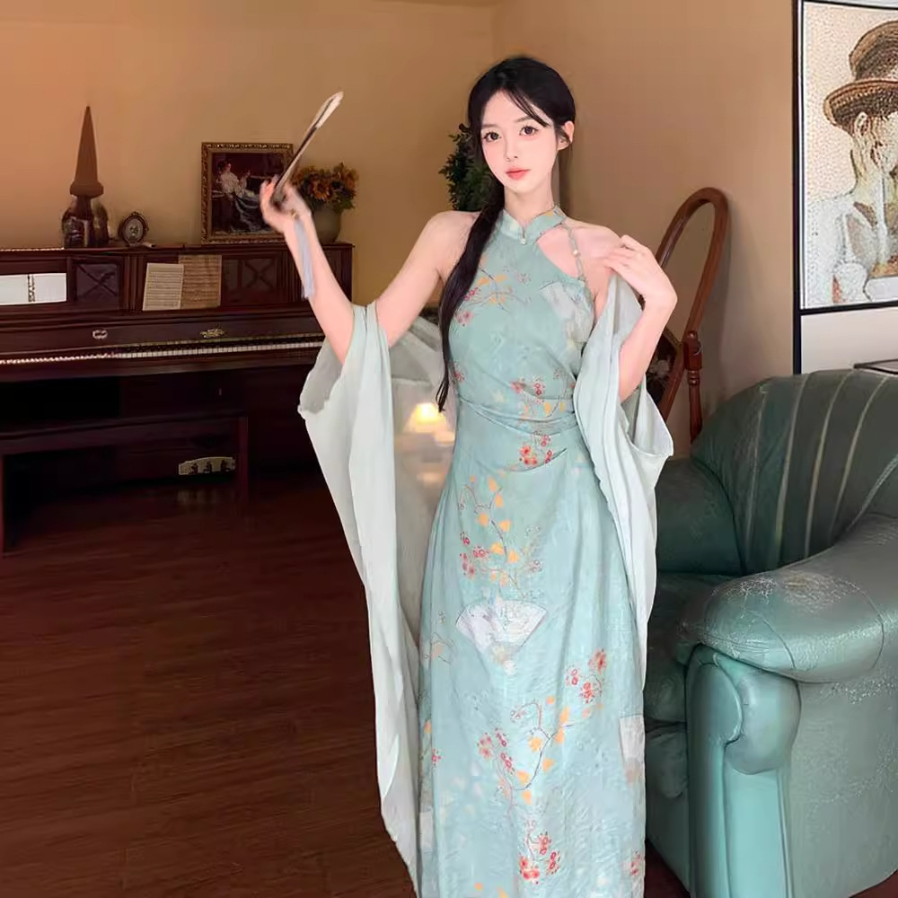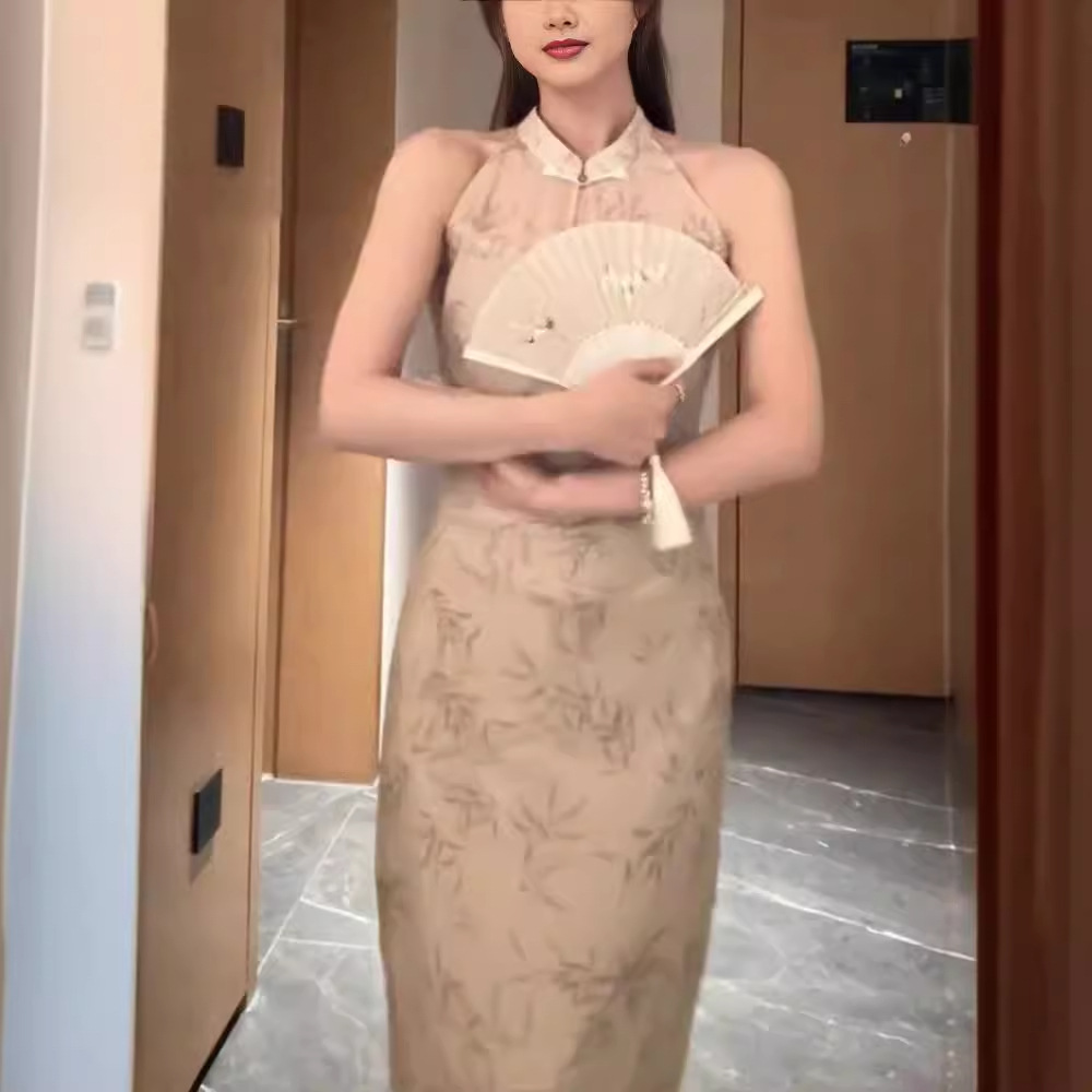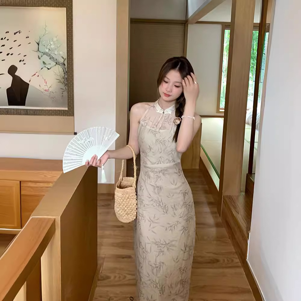 チャイナドレス 2025 新しい改良された国民スタイルの夏の若いスタイル美しい新しい中国風のホルターネックガールドレス