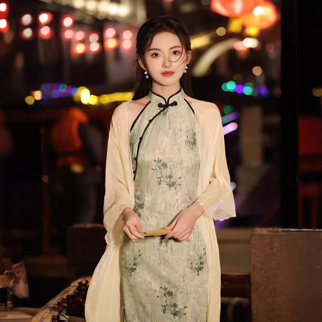 2024新型の早春は新中国風の復古改良チャイナドレスのセットを着ています。