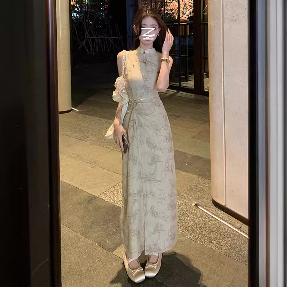 2024新型袖なし首付き新中国式ロングタイプ改良チャイナドレス若いタイプの少女国風復古日常着可能