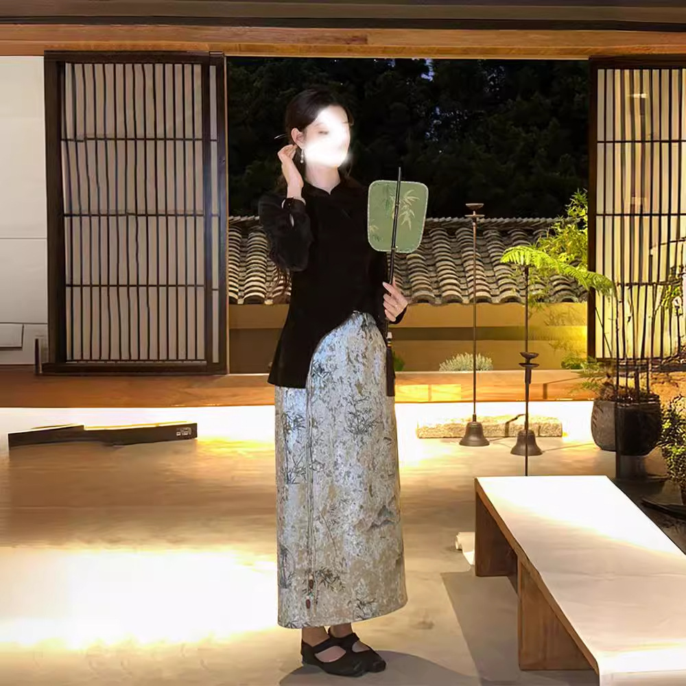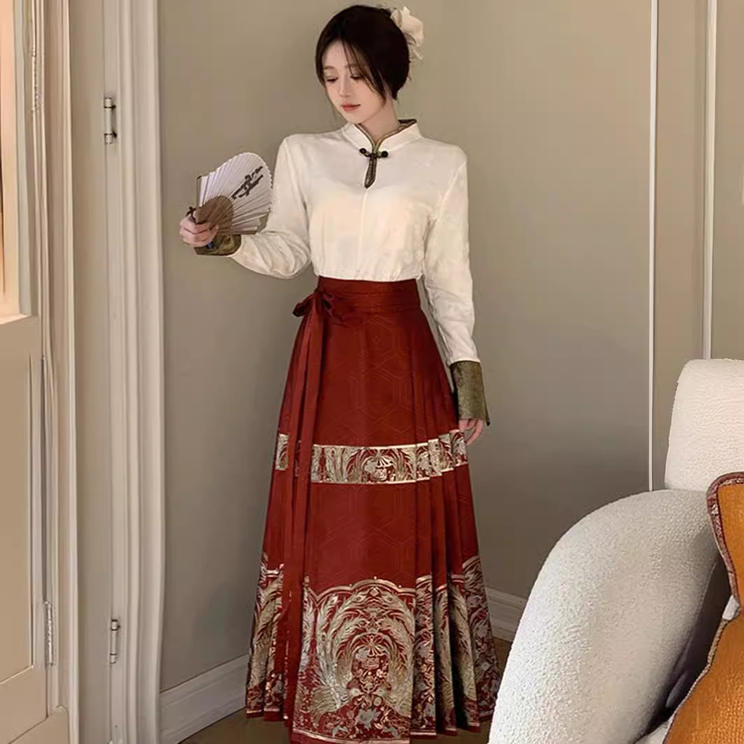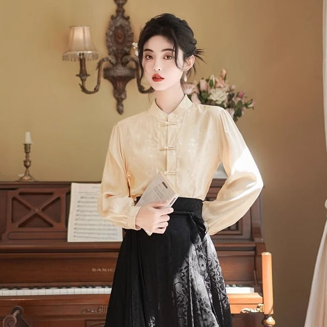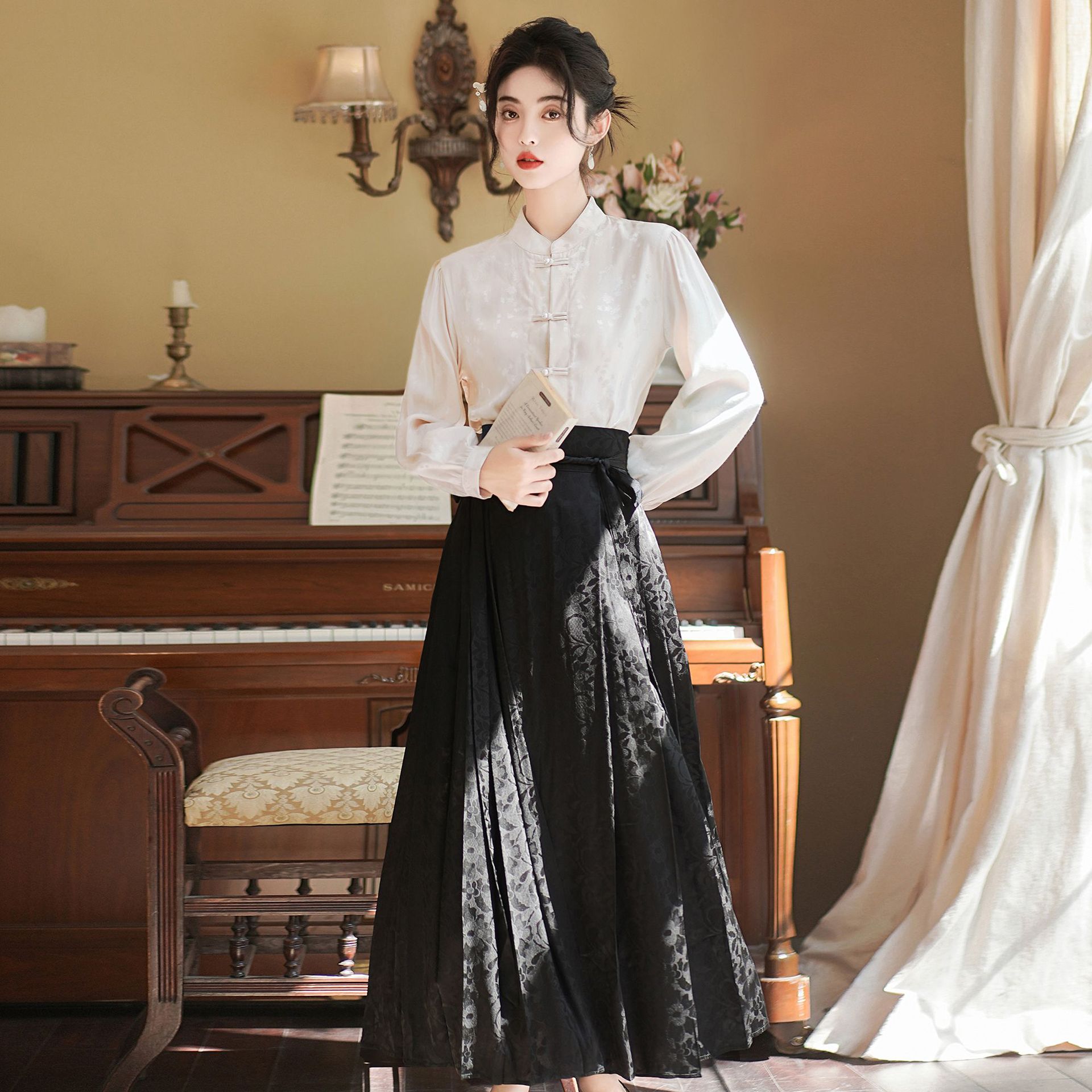 新中国式国風漢服ジャカードシャツと馬面スカートと日常通勤で痩せて見えるスカートセット