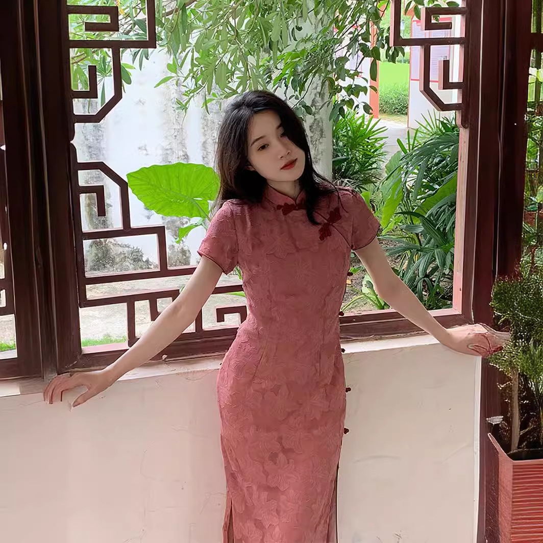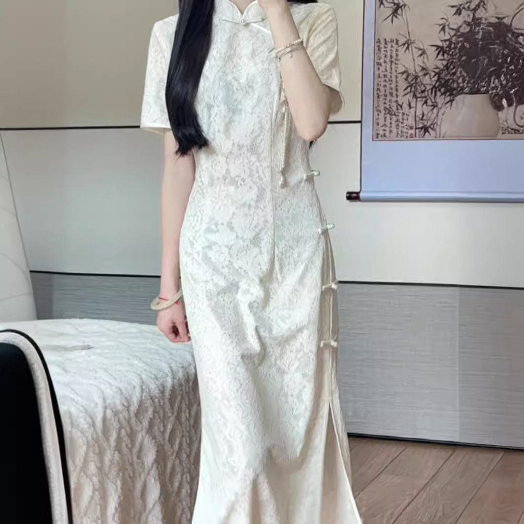 2024新作夏ミディアムレースカート高級気質国風新中国式改良チャイナドレス女性