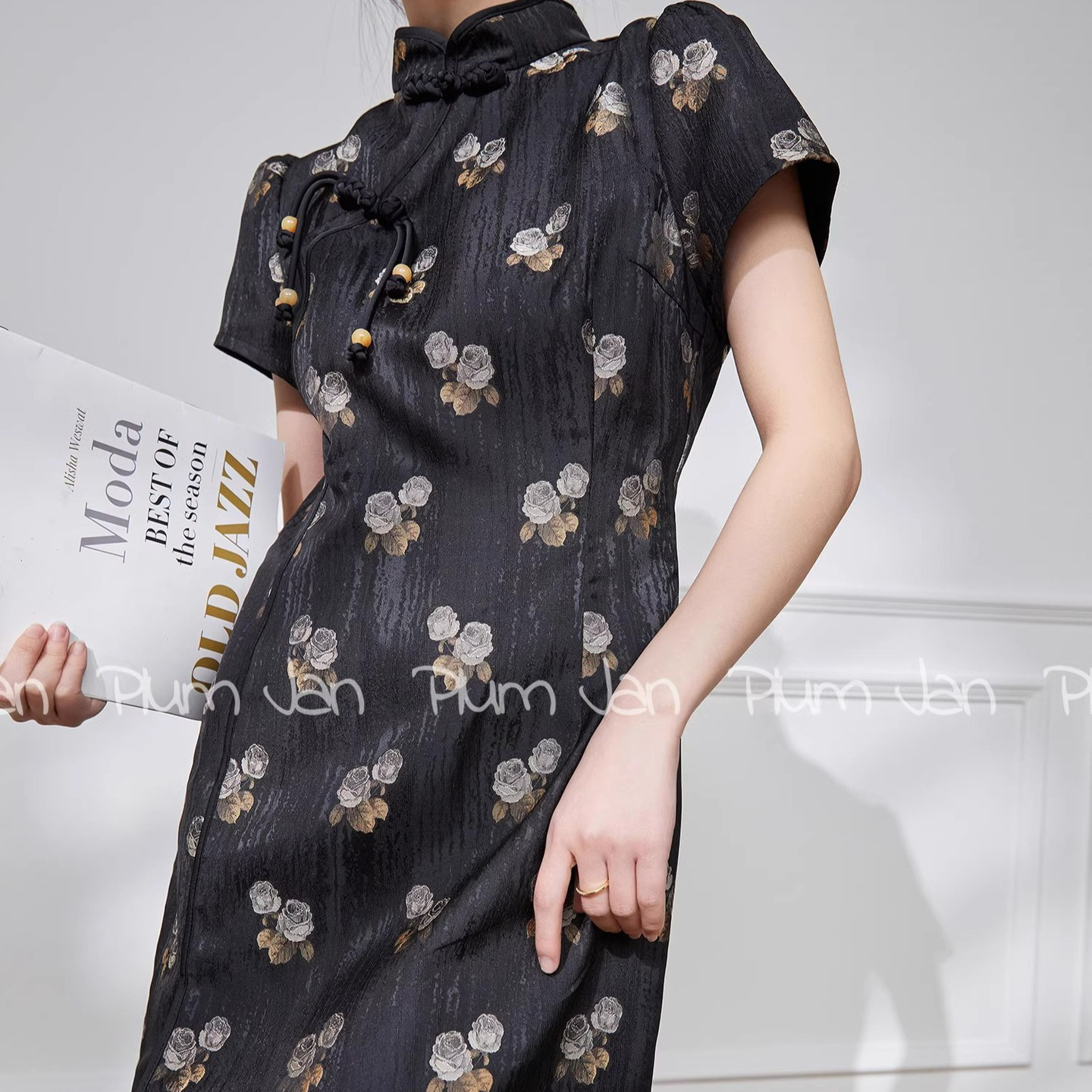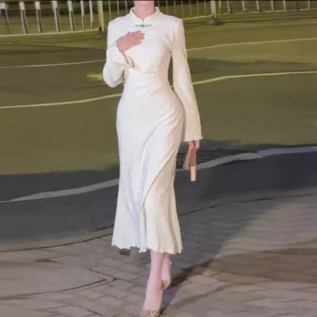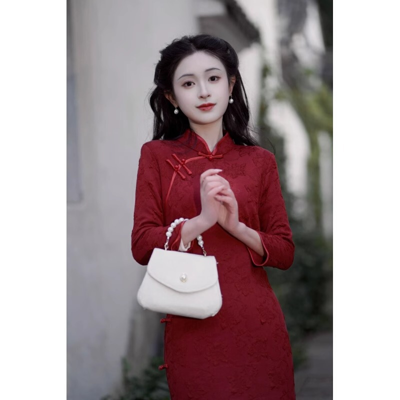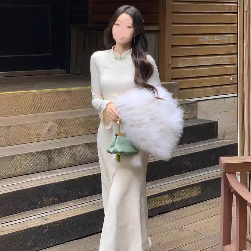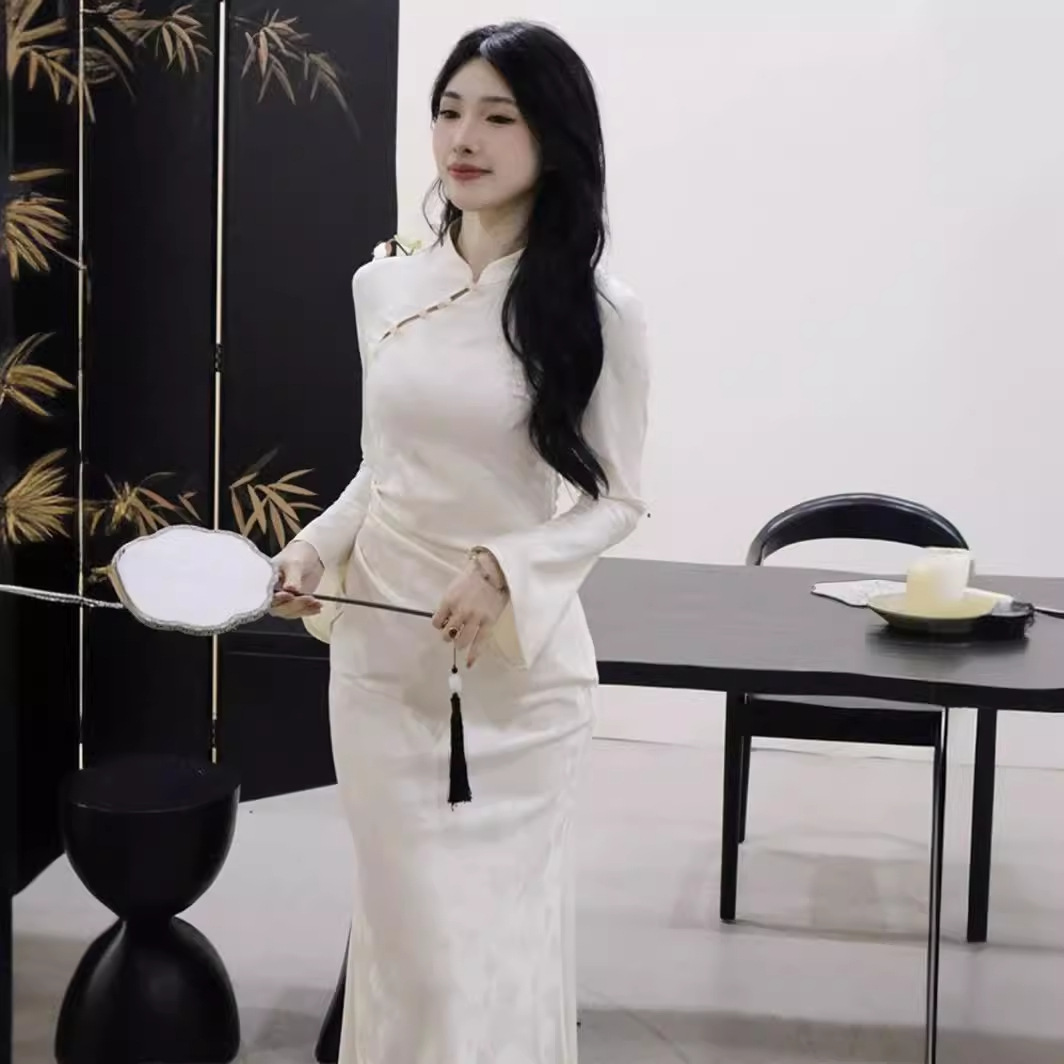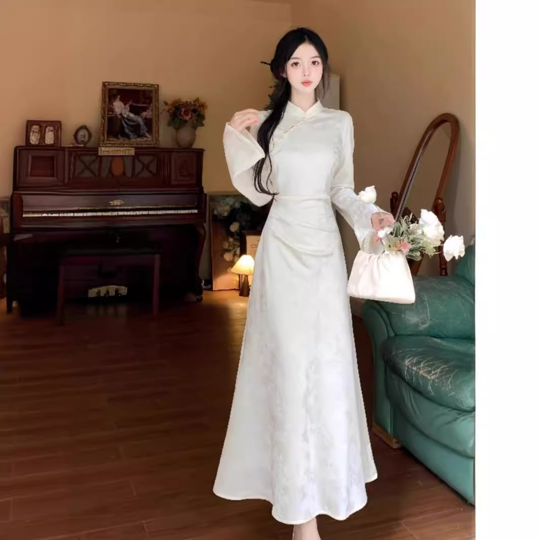 【梨の花は雪のようです】2024年新中国式レトロ改良チャイナドレス春新作ジャカード長袖ワンピース