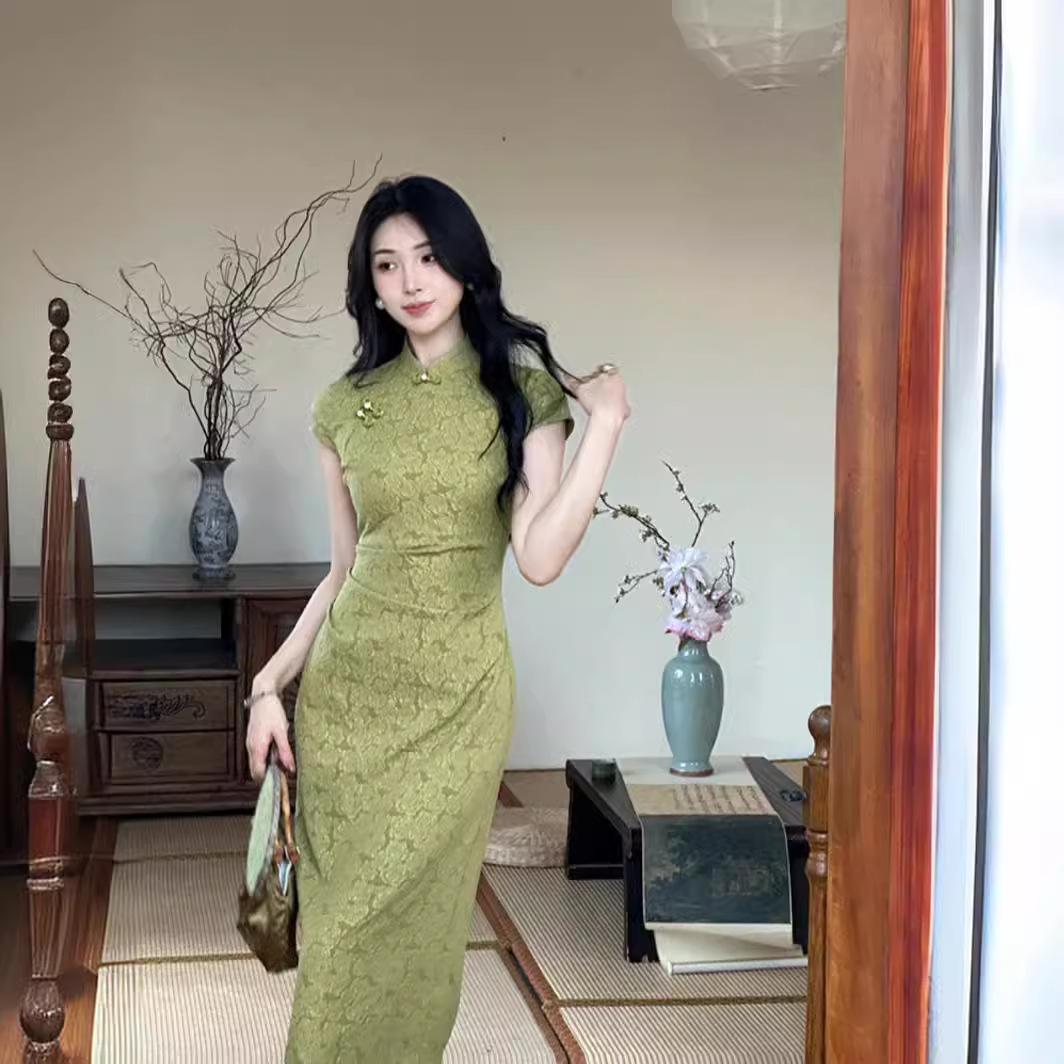 チャイナドレスのワンピースを改良した女性春夏2024新中国式国風修身は痩せた気質でお尻のロングスカートを包む