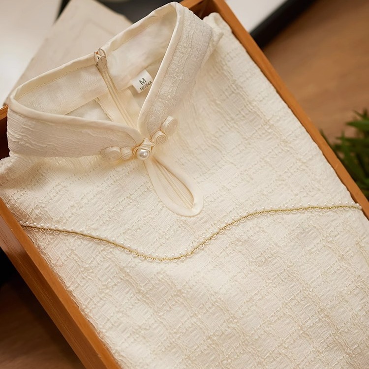 新中国式軽国風盤ボタン改良チャイナドレス女性2024春新作禅意素雅白色ロングスカート