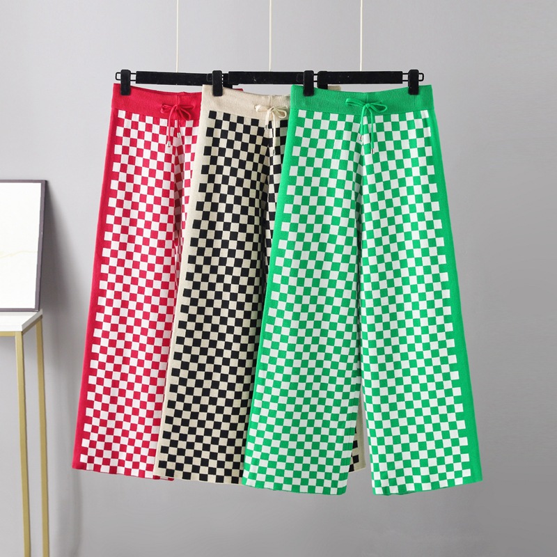 2022年秋冬新作ニットズボンとカジュアルなワイドパンツのペンダント感のあるズボンの女性