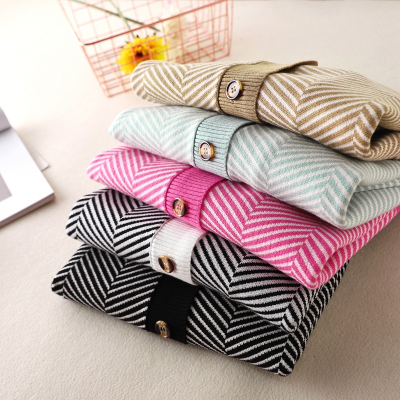 2023春秋新作韓国版シングルボタンカーディガン女性vネック衝突色ゆるいストライプセーターコート長袖上着