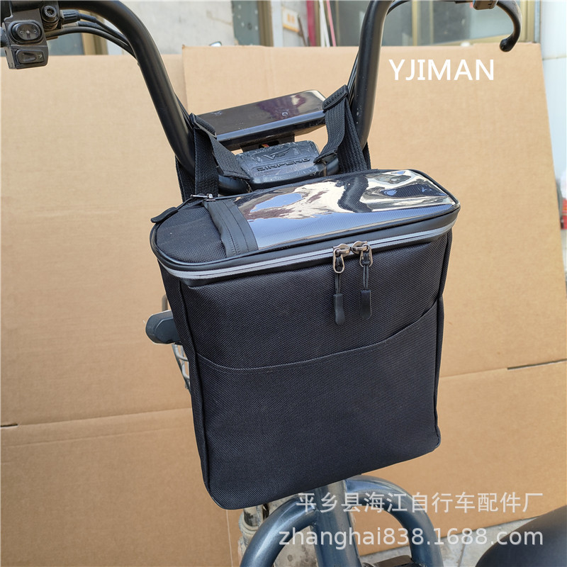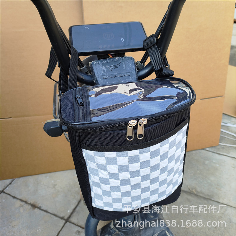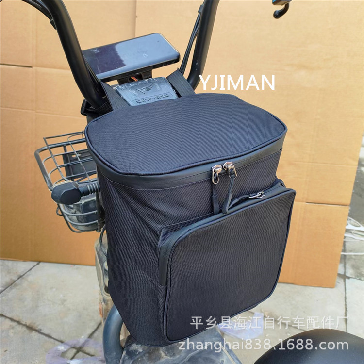 電気自動車の自転車の前に電気自動車のヘッドバッグのハンドルバッグを掛けます。