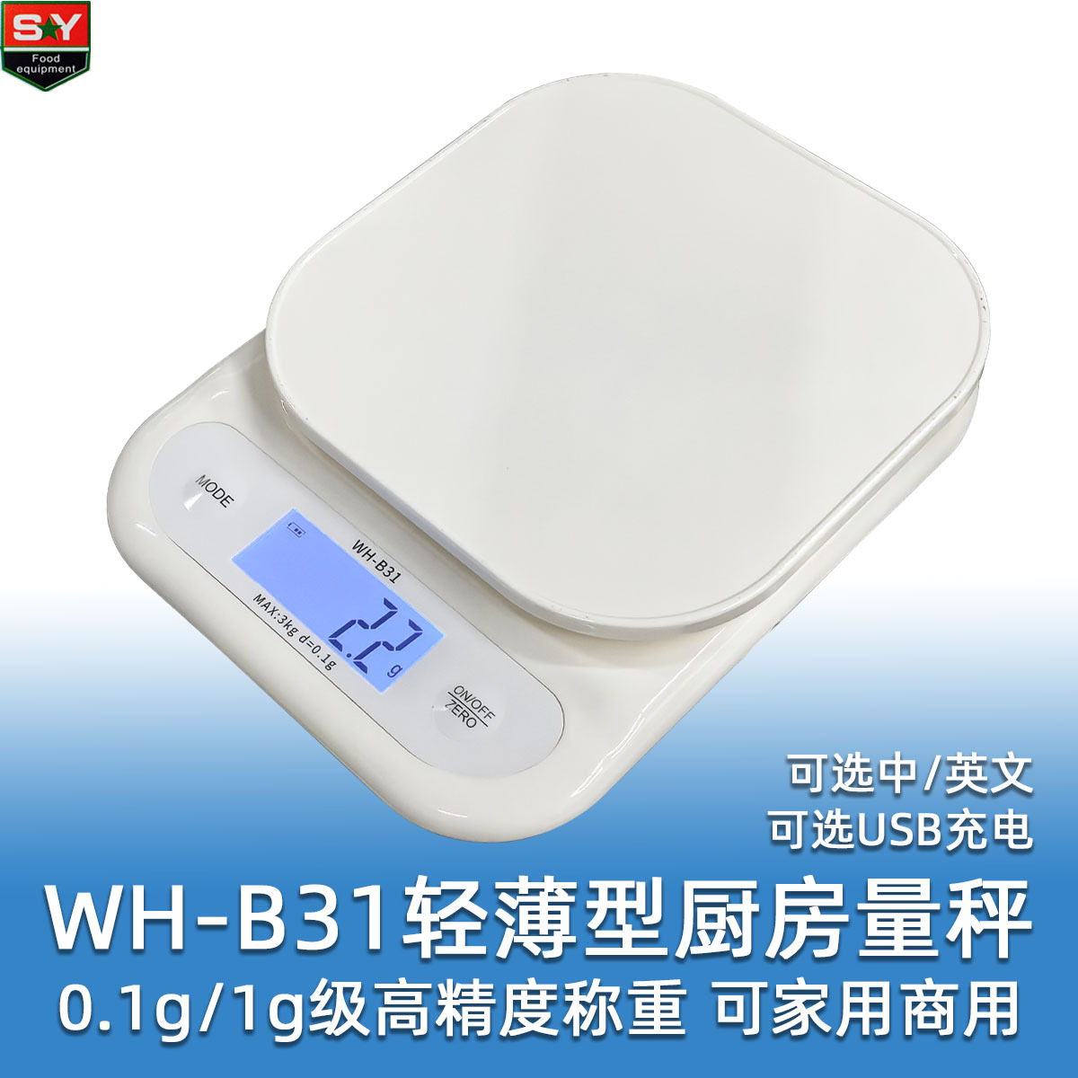 新型B31家庭用台所秤電子秤3kg/0.1g焙煎秤精密量秤超薄型ボディ充電可能