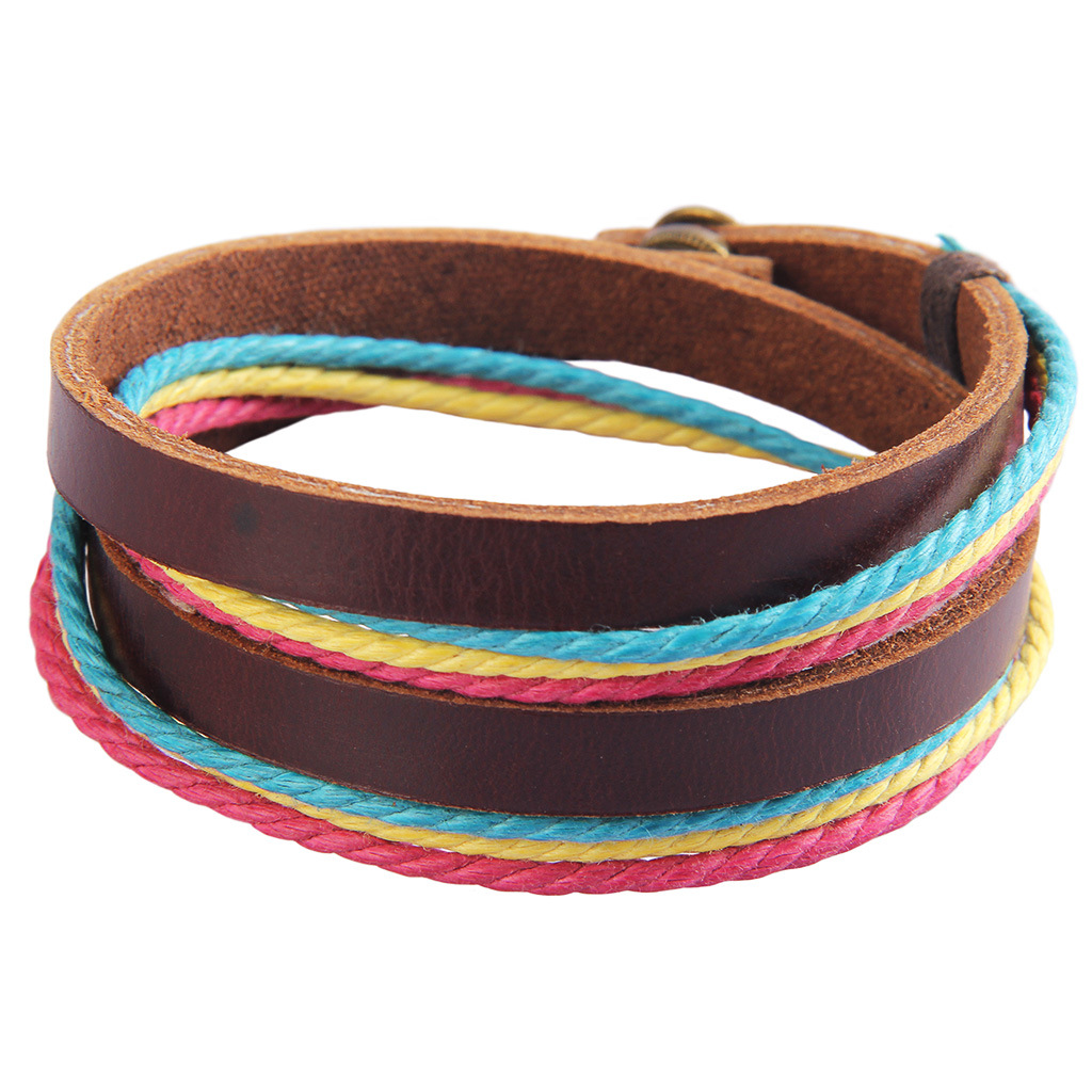 虹の装飾品は簡単で、多層の牛革の五色の縄はブレスレットのアイデアを組み合わせます。