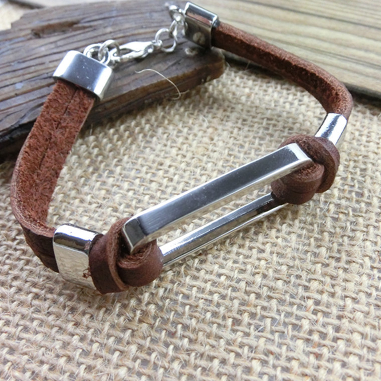 アマゾンアクセサリーシンプル牛革幾何学円形合金金属ブレスレット男性七夕プレゼント欧米ジュエリー