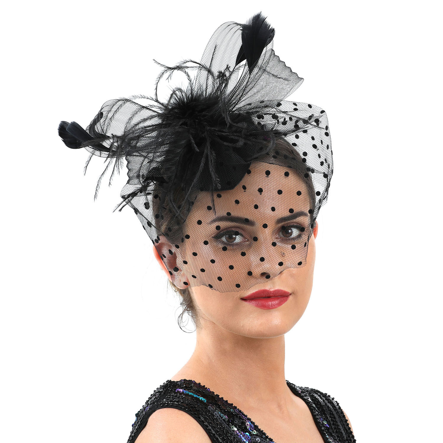 アマゾンの国境を越えた商品の供給源欧米の蝶結びの網の糸の復古の名媛の集まりの羽の花の花嫁の帽子の飾り